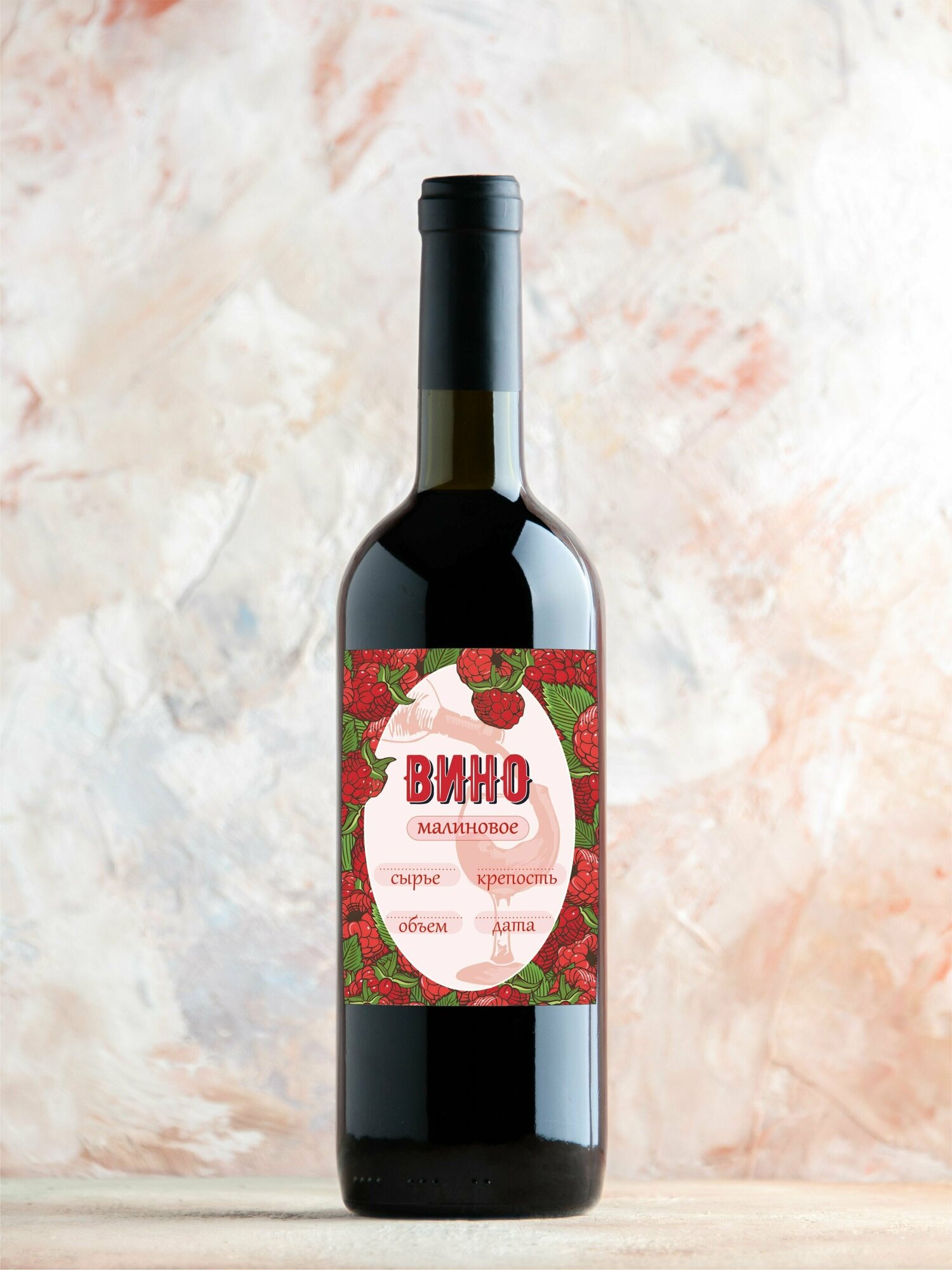 Купить Набор самоклеящихся этикеток для бутылок домашнего алкоголя, Вино малиновое, 7х10см, 48шт