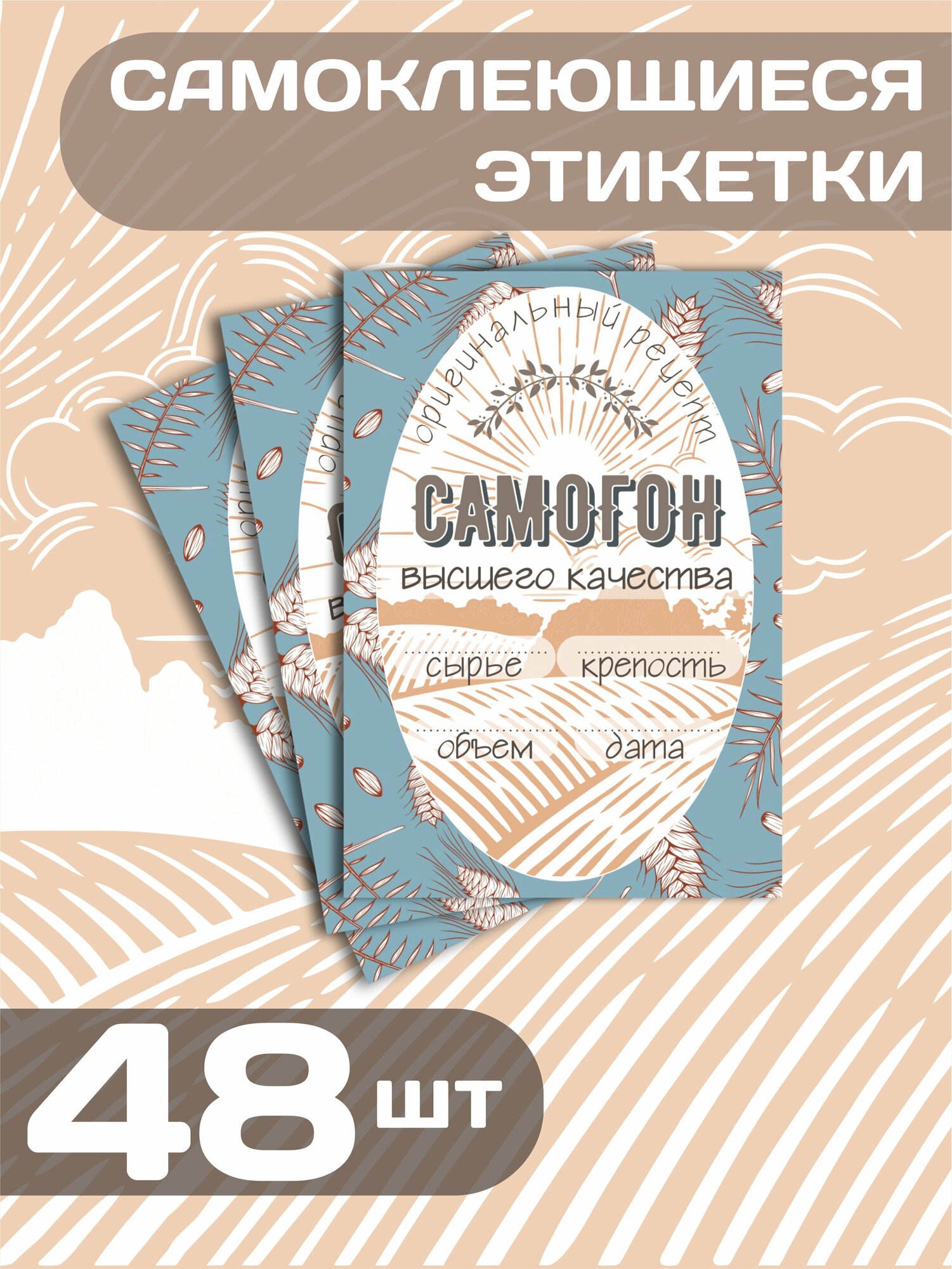 Набор самоклеящихся этикеток для бутылок домашнего алкоголя, Самогон, 7х10см, 48шт