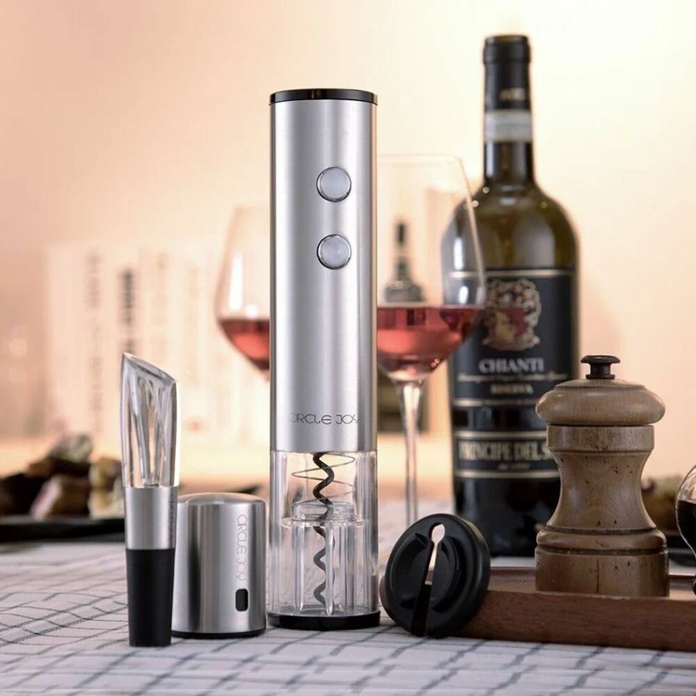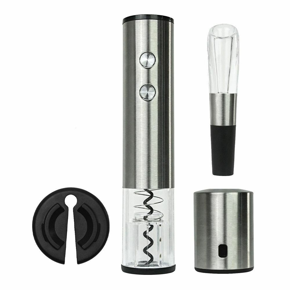 | Дополнительная информация | В комплект входят 4 предмета: Нож ( поможет аккуратно и быстро вскрыть пластиковую упаковку бутылки ). Штопор с электрическим моторчиком ( вытащит пробку за 6 секунд ). Аэратор ( не допустит проливания напитка, а также насытит его кислородом). Стопор ( создает вакуум внутри бутылки и тем самым будет препятствовать испарению диоксида углерода ) |