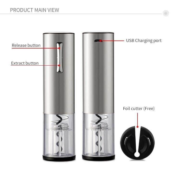 Электрический штопор Fackelmann с Micro USB и обрезателем интересное: