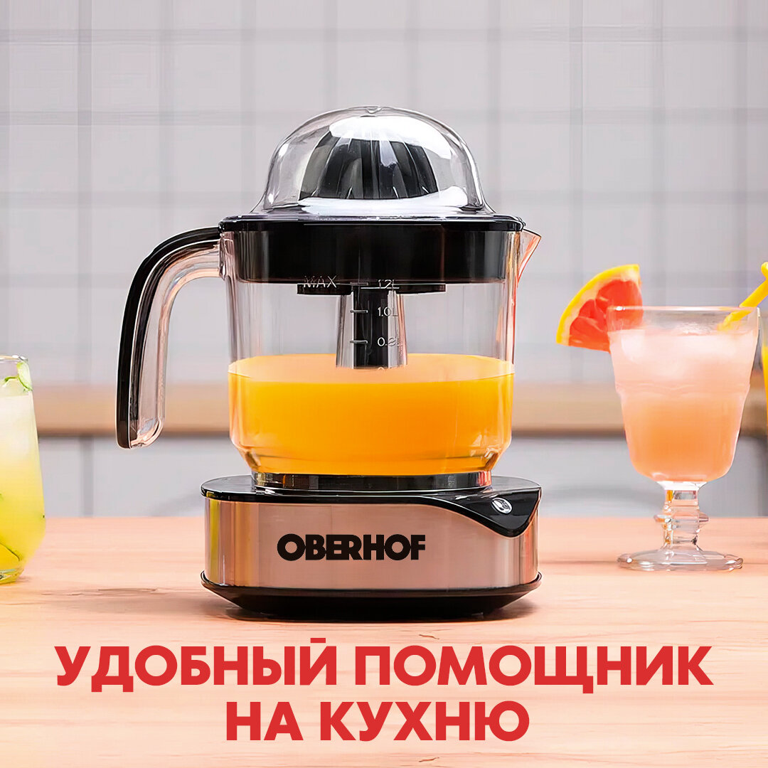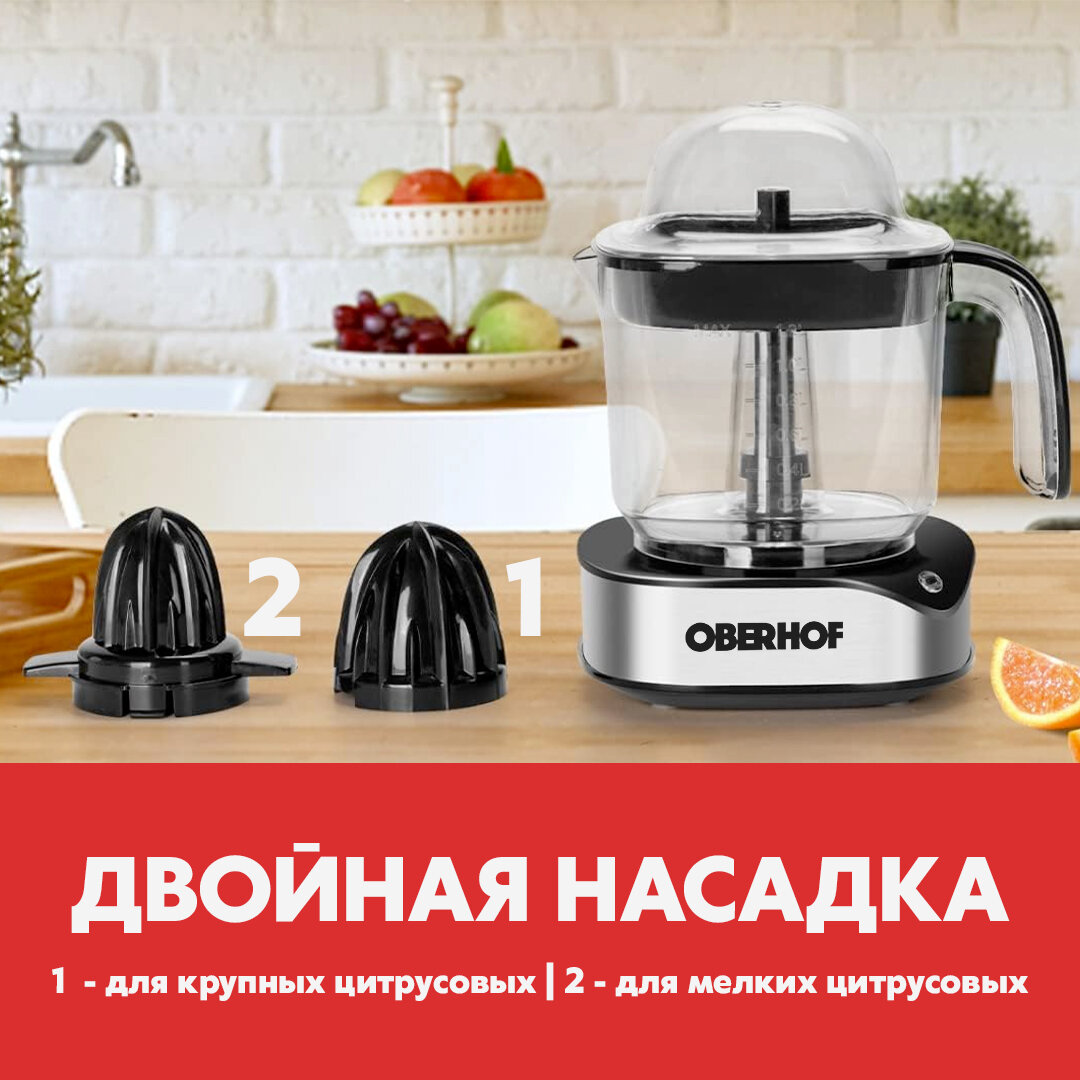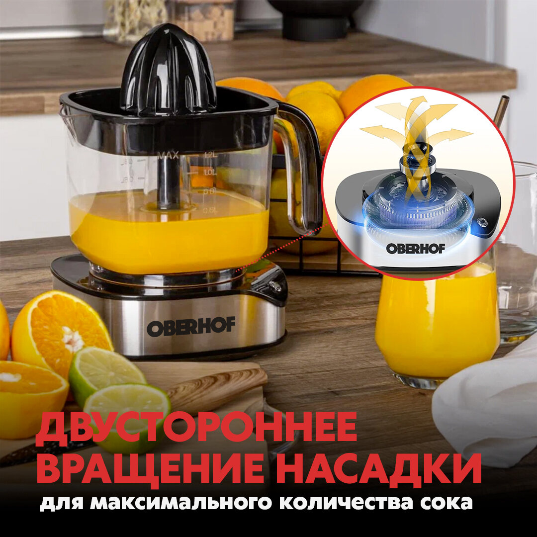 Соковыжималка для цитрусовых 2 насадки для фруктов, сокодавка электрическая для апельсин, пресс для лимона, чаша 1200мл, OBERHOF Zitruspresse J-25 интересное: