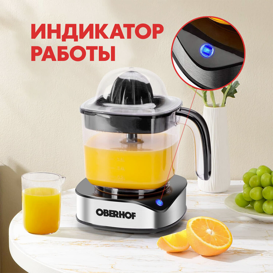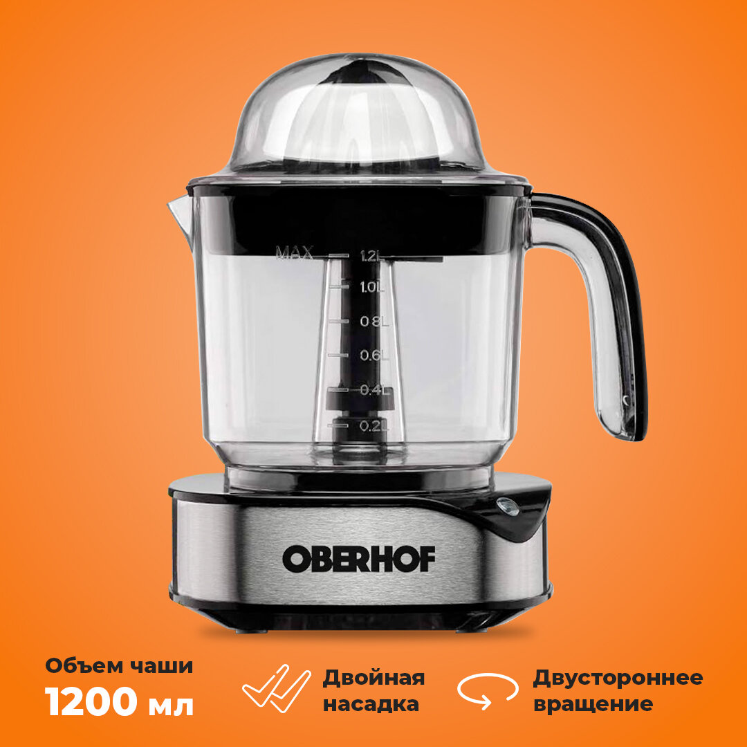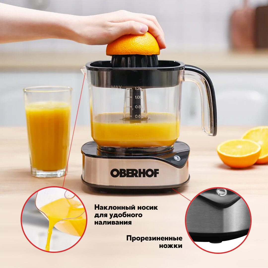 Соковыжималка для цитрусовых 2 насадки для фруктов, сокодавка электрическая для апельсин, пресс для лимона, чаша 1200мл, OBERHOF Zitruspresse J-25 интересное: