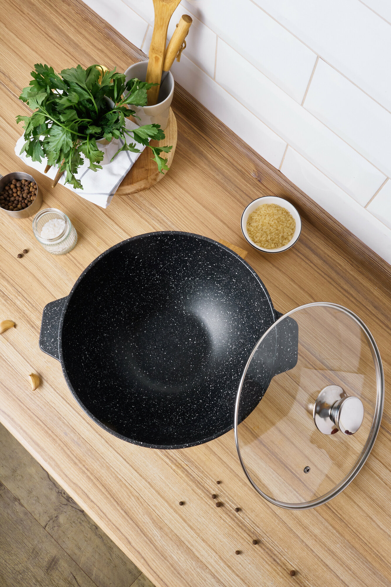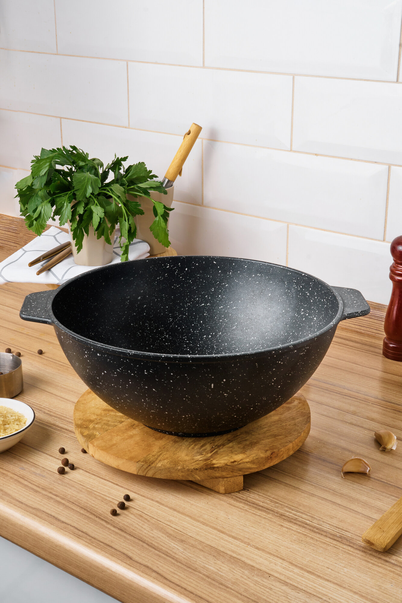 Казан для плова 6,5 литра ALWA с крышкой литой антипригарный цвет мрамор