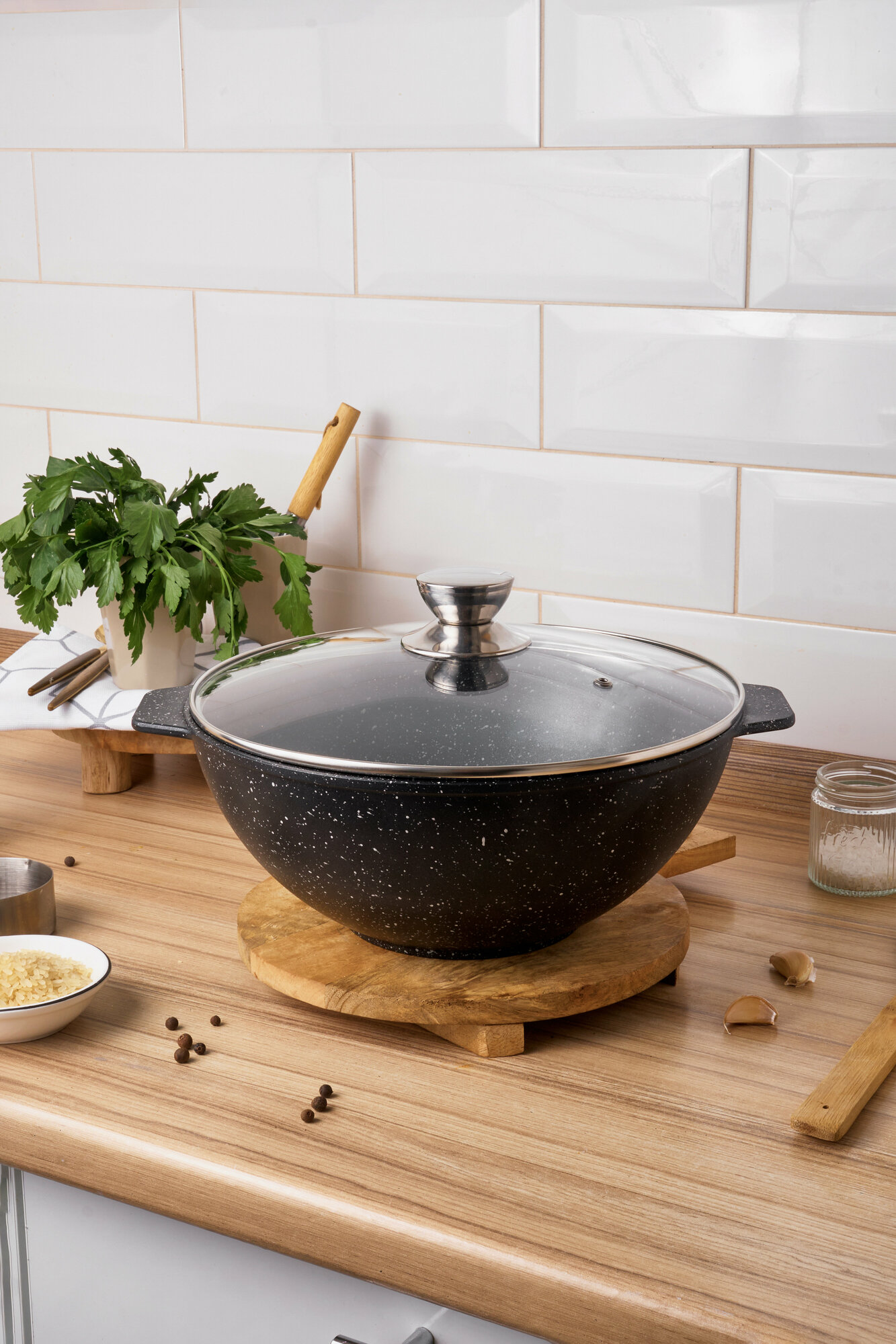 Казан 4,5 литра с крышкой ALWA литой с антипригарным покрытием для плова цвет мрамор