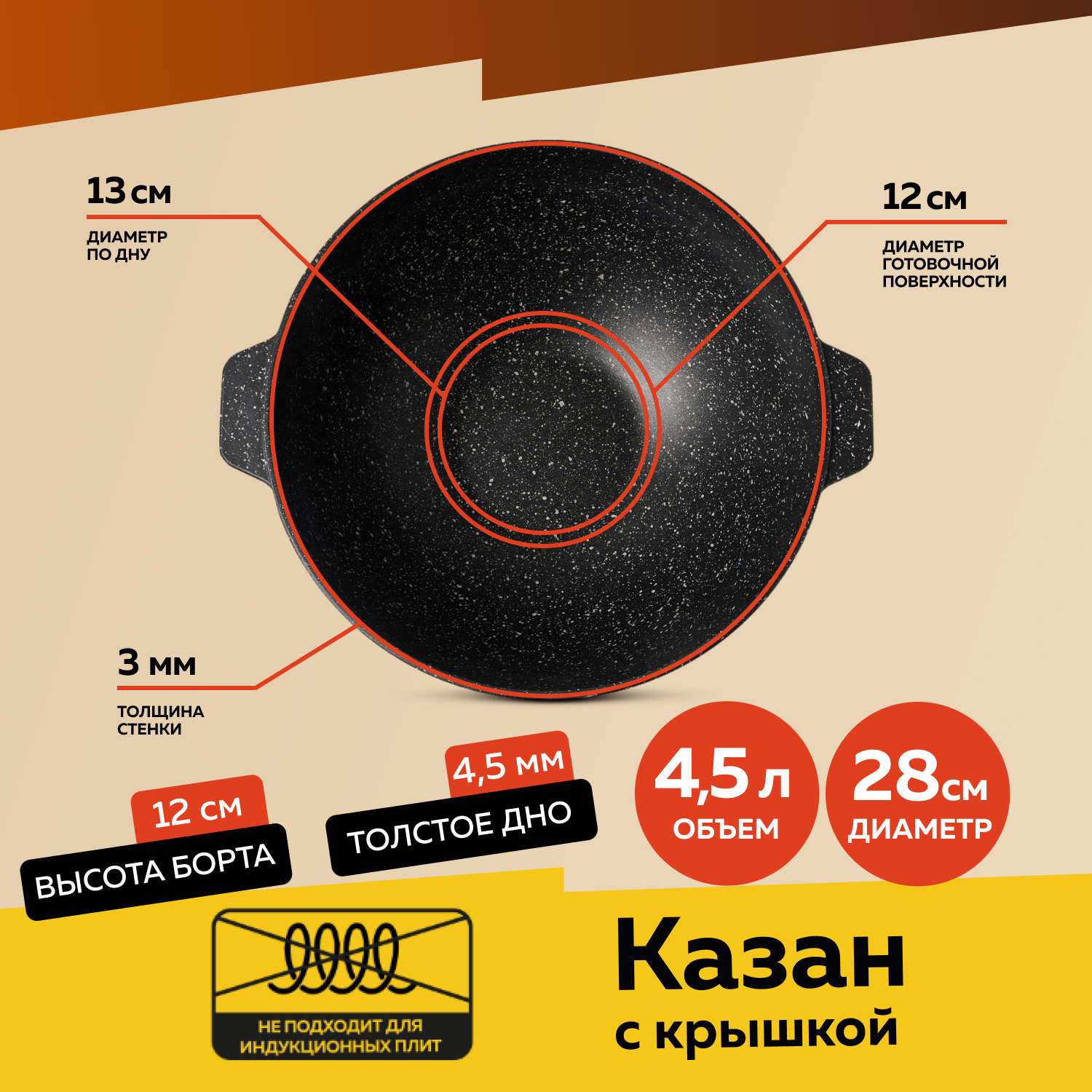 Казан 4,5 литра с крышкой ALWA литой с антипригарным покрытием для плова интересное: