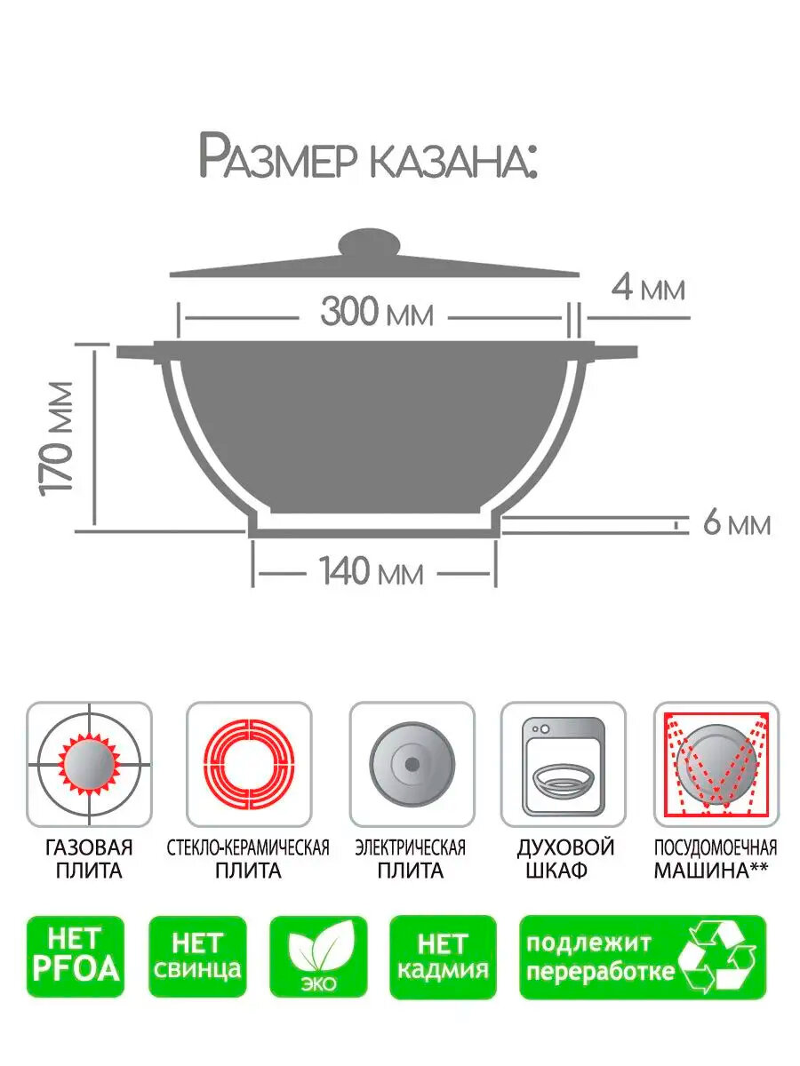 | Толщина дна | 6 мм |
