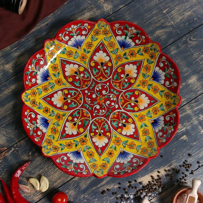Ляган Риштанская Керамика "Цветы", 32 см, красный, рифлённый интересное: