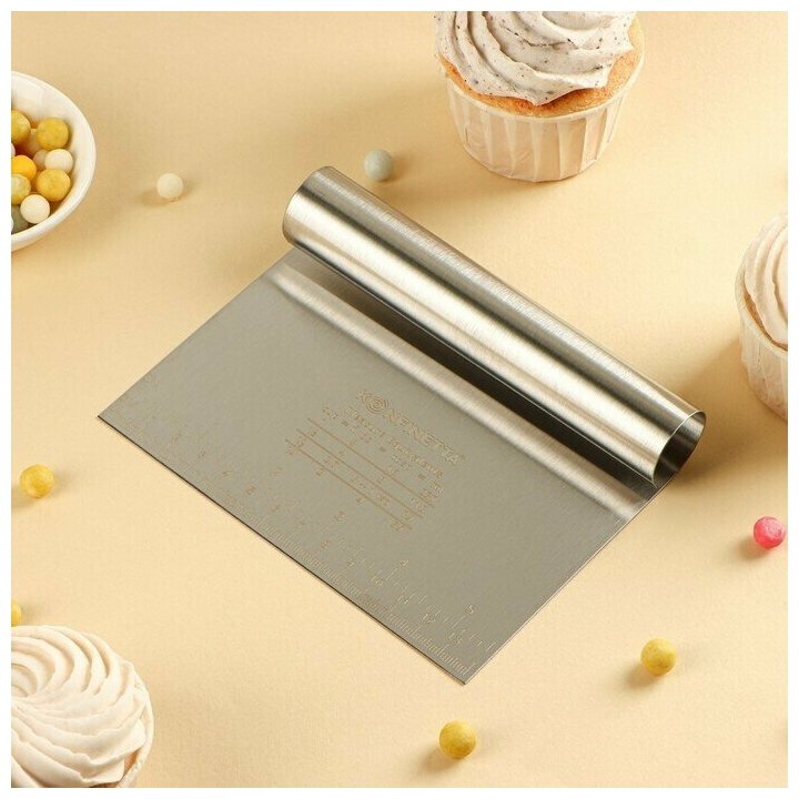 Купить Шпатель-скребок кондитерский с линейкой металлический 15х11,5 см