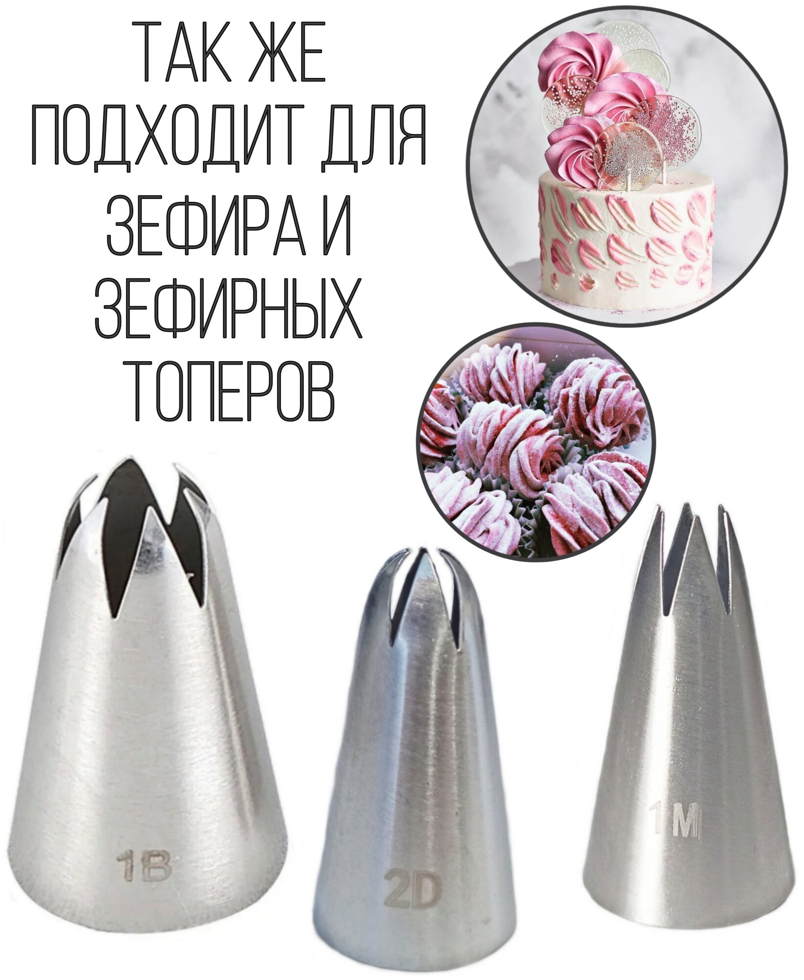 Набор самых популярных кондитерских насадок (1В, 2D, 1М) интересное: