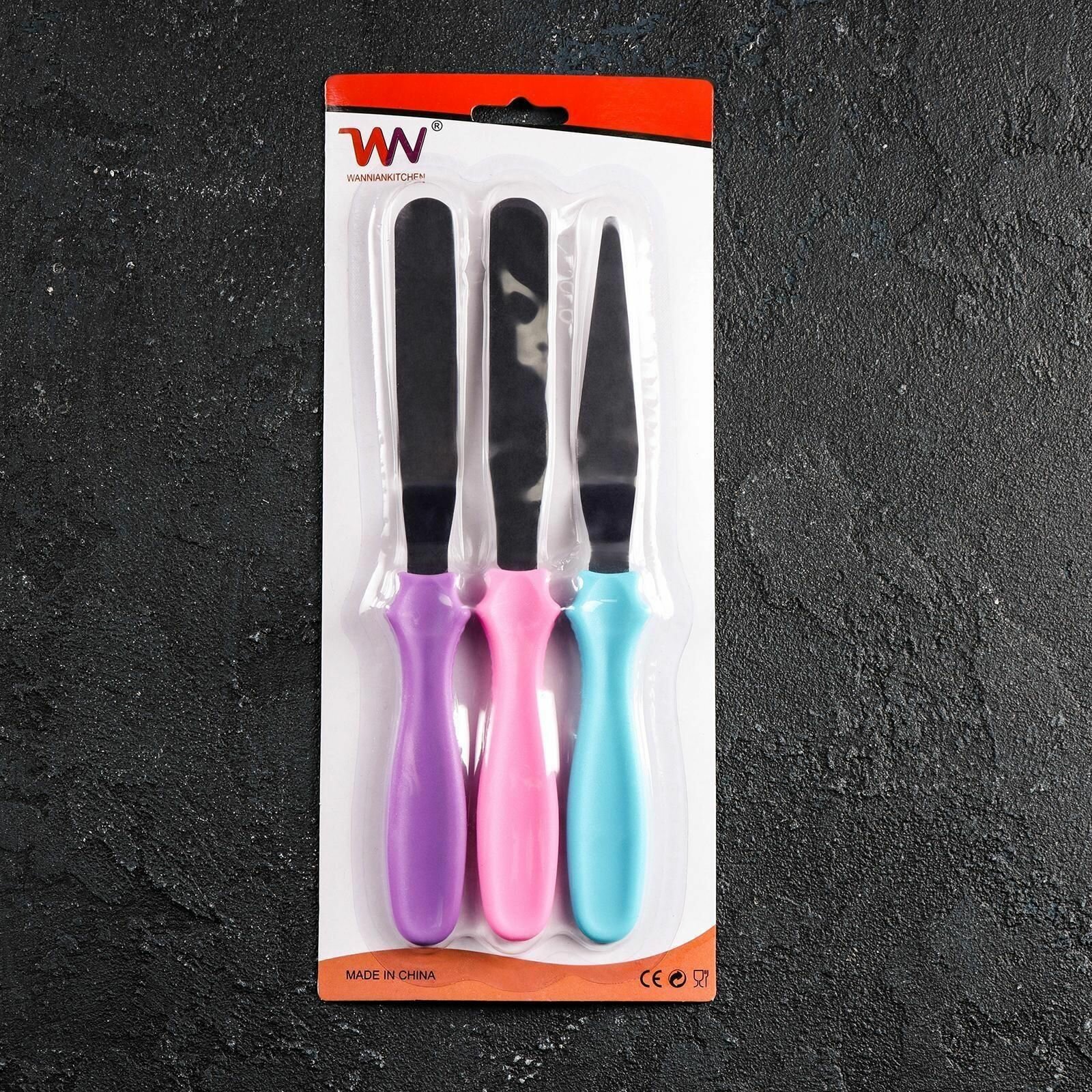 Набор лопаток-палеток кондитерских Доляна, 3 шт, 22×8×1,5 см