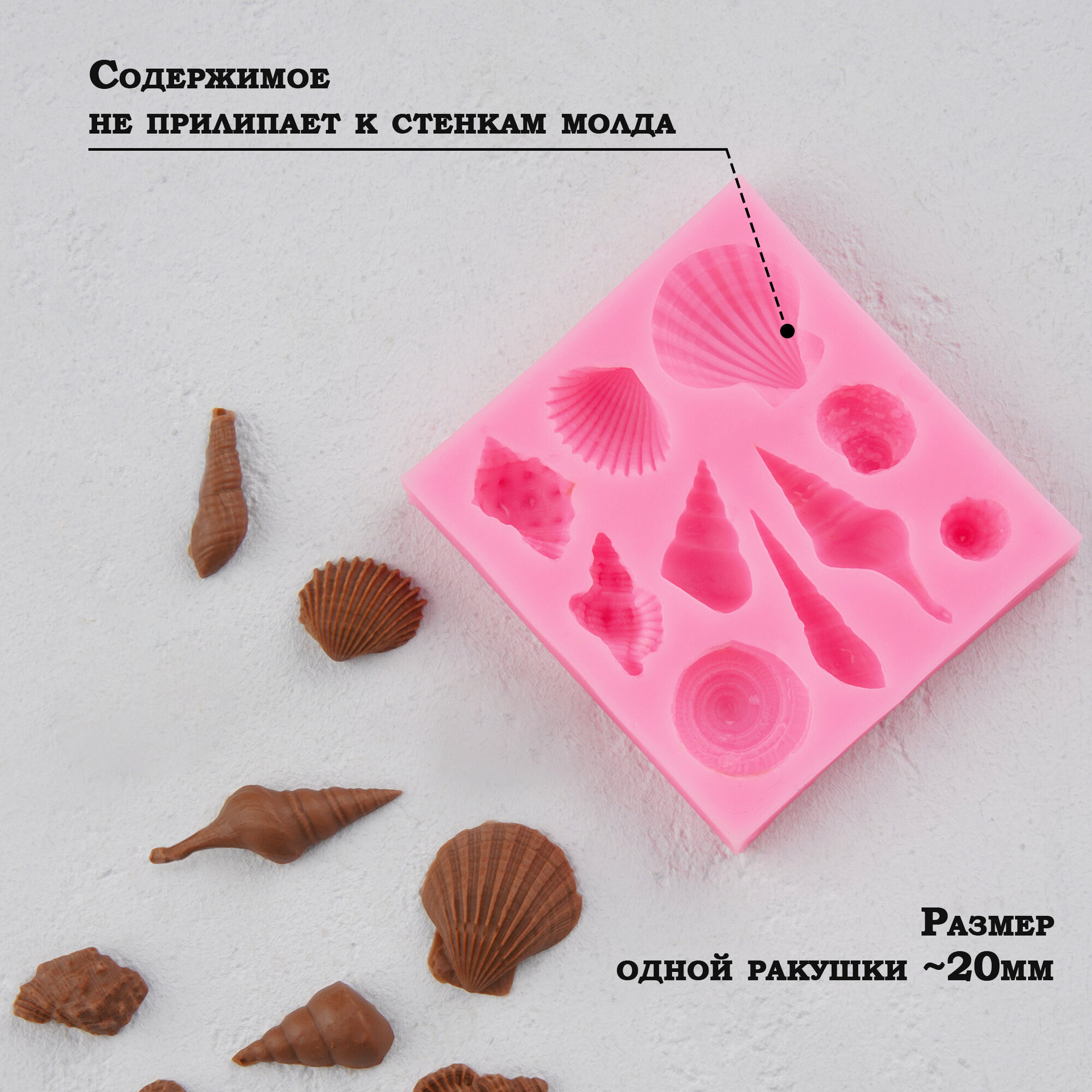 Молд «Ракушки», силикон, 7,7×7×1,5 см, цвет розовый