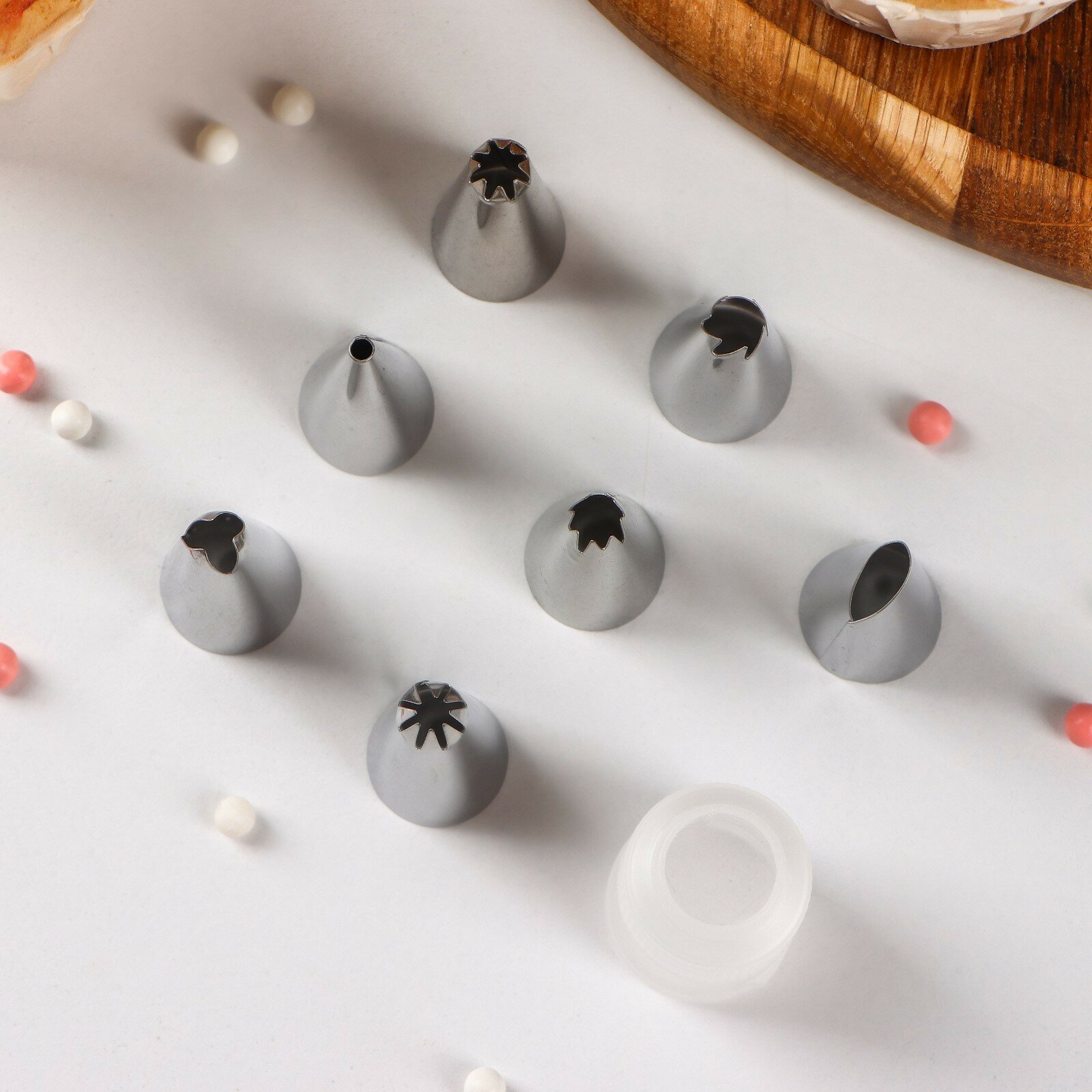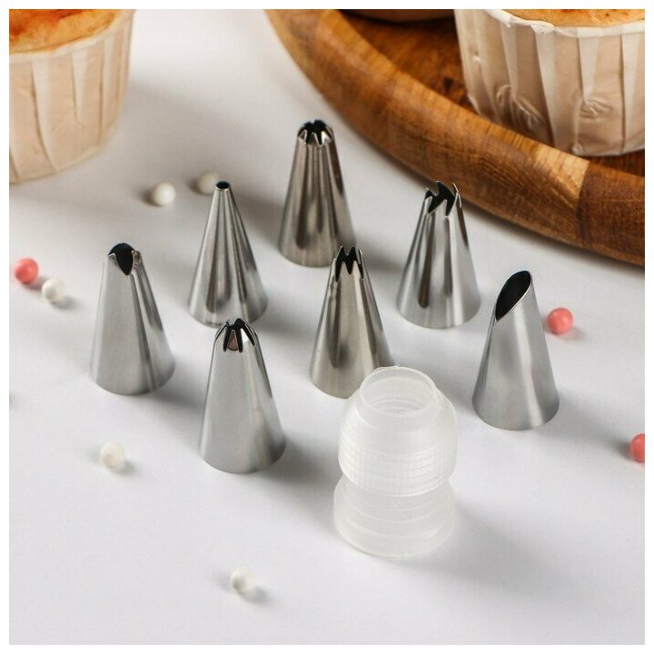Купить Набор насадок кондитерских Доляна, d=1,6 см, 8 шт, адаптер, насадки в ассортименте
