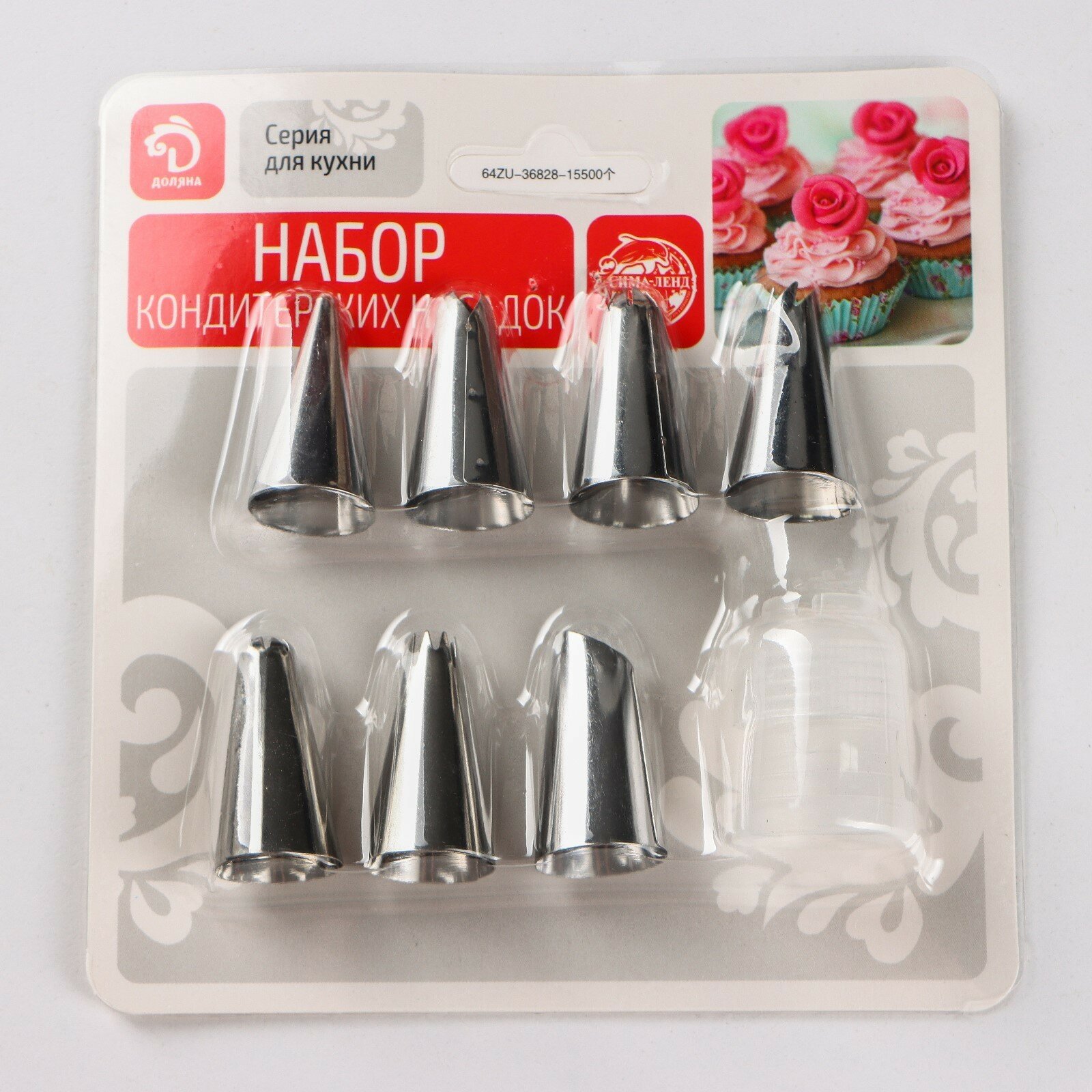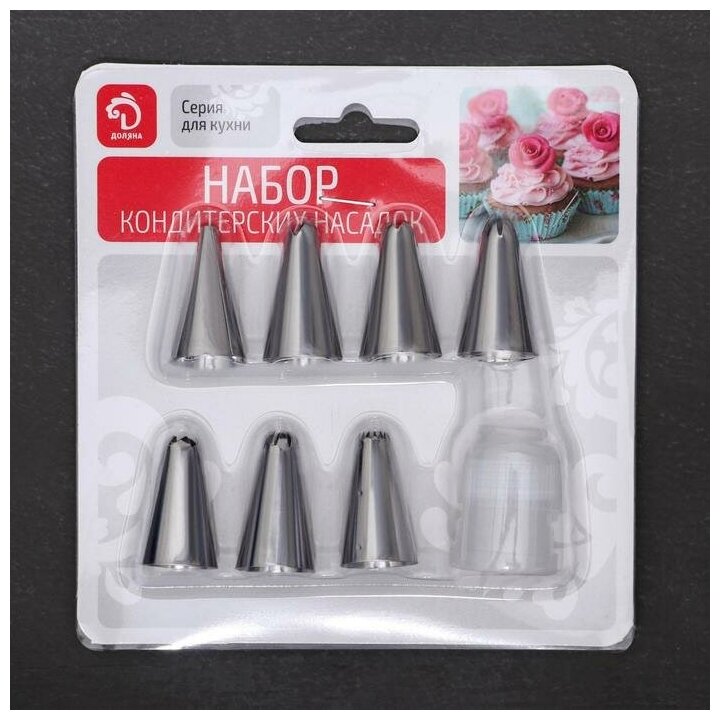 | Комплектация | Набор насадок кондитерских Доляна, d-1,6 см, 8 шт, адаптер |