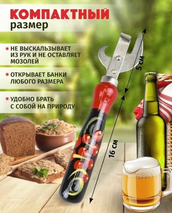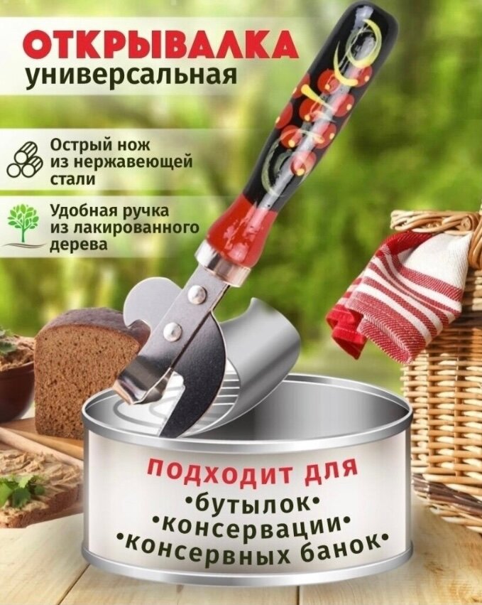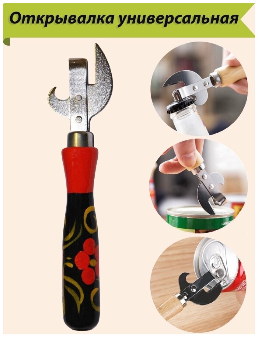 Открывашка для консервов с художественной росписью "Хохлома", открывалка для банок, консервный нож интересное: