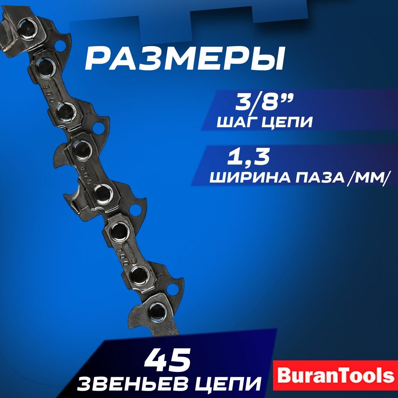 Купить Цепь для бензопилы 45 звена (чизельный супер зуб), шаг-3/8, ширина-1,3мм