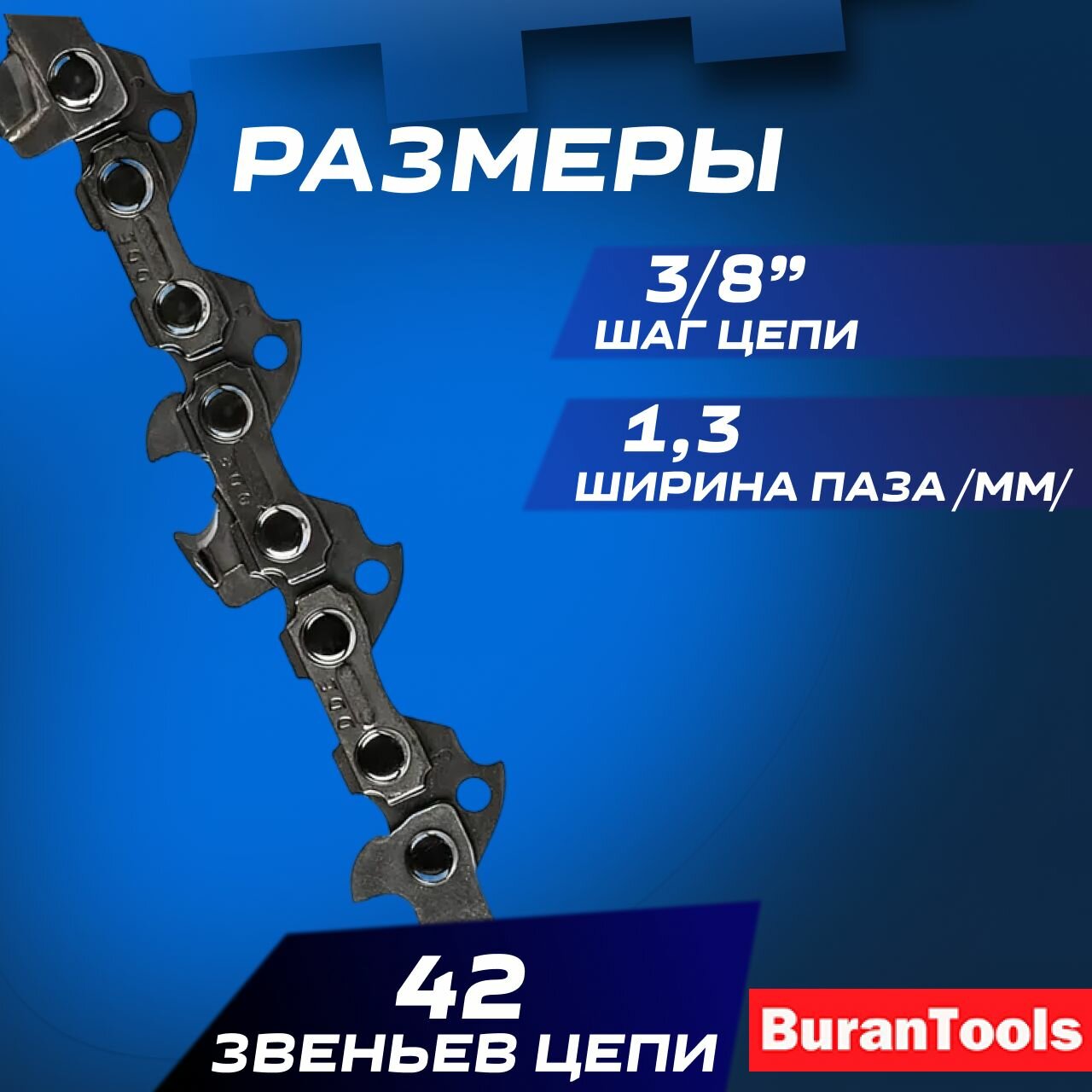 Купить Цепь для бензопилы 42 звена (чизельный супер зуб), шаг-3/8, ширина-1,3мм