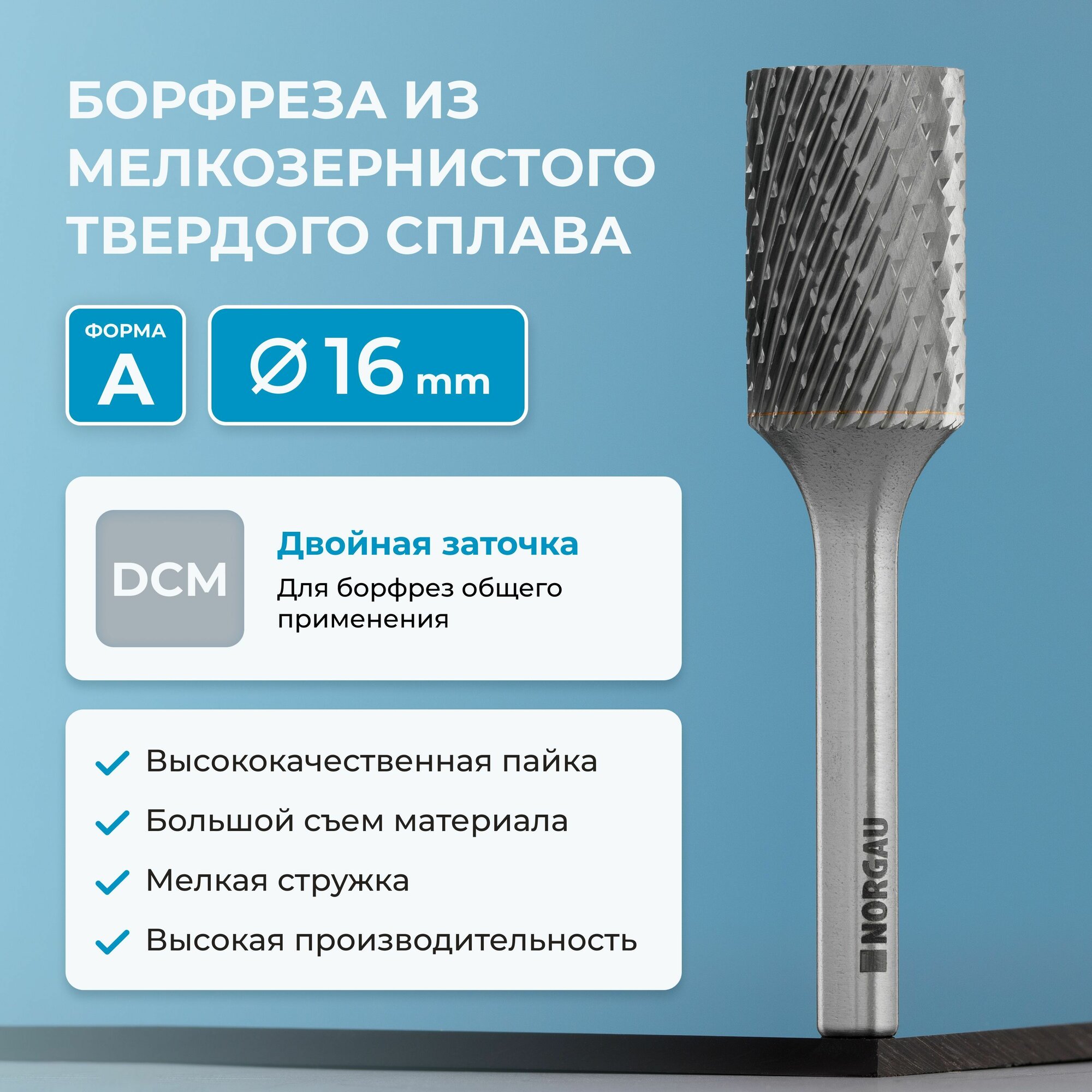 Купить Борфреза твердосплавная NORGAU Industrial цилиндрическая 16 мм, форма A, DCM