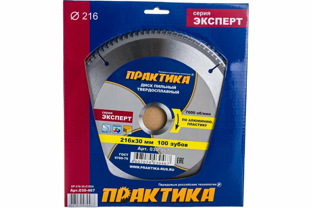 Диск пильный твердосплавный 216x30, Z100 T2,2 мм алюминий ПРАКТИКА 030-467 интересное: