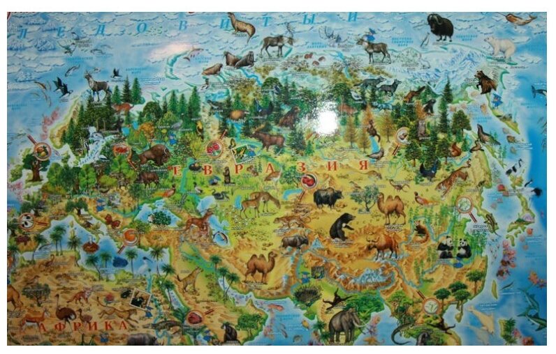 | Отзыв: | Качественная карта. С хорошей детализацией. Дети знают где какие звери водятся. Берём уже вторую - первая, купленная при старших детях, износилась |