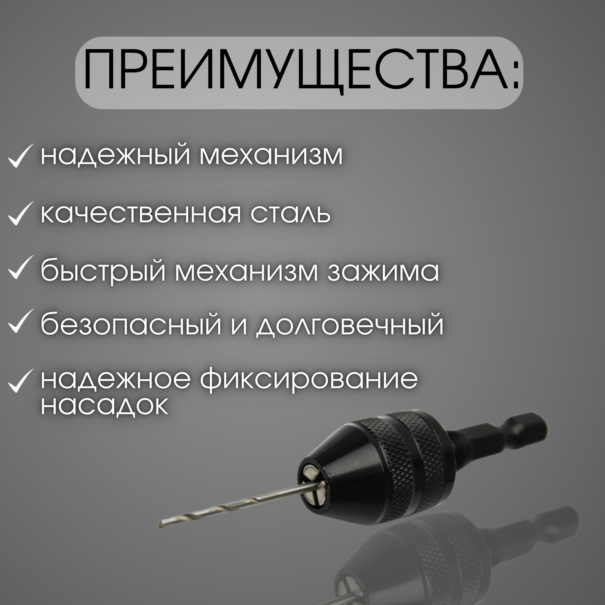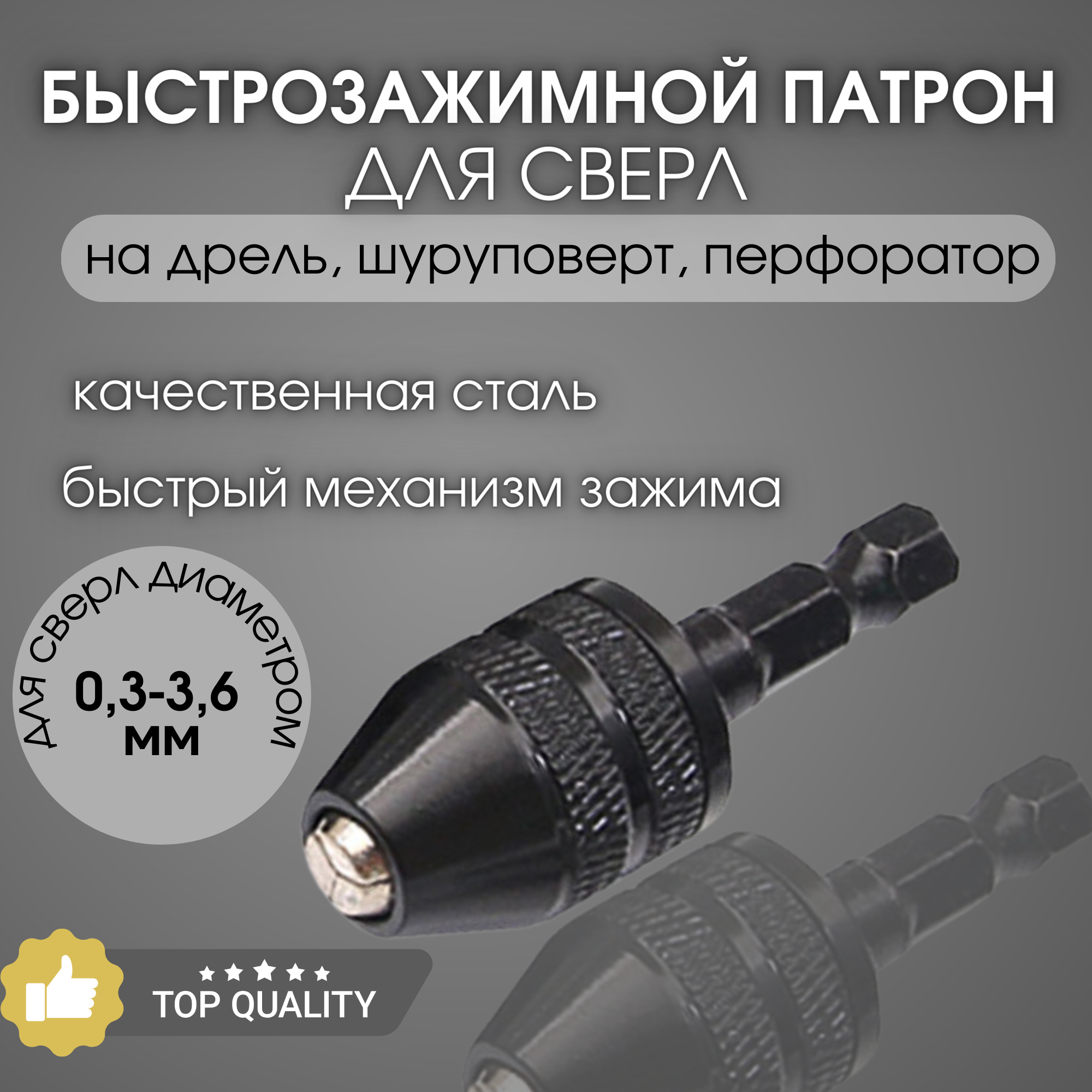 Купить Быстрозажимной патрон на шуруповерт для свёрл 0,3-3,6 мм, шестигранный хвостовик, SS, черный