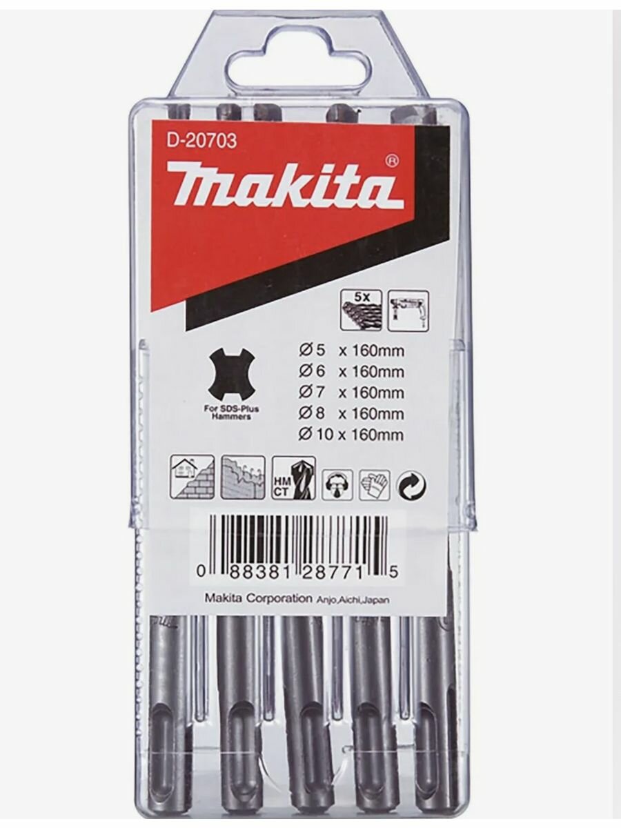 Набор буров Makita D-20703, SDS-Plus, 5/6/7/8/10х160мм, 5шт.