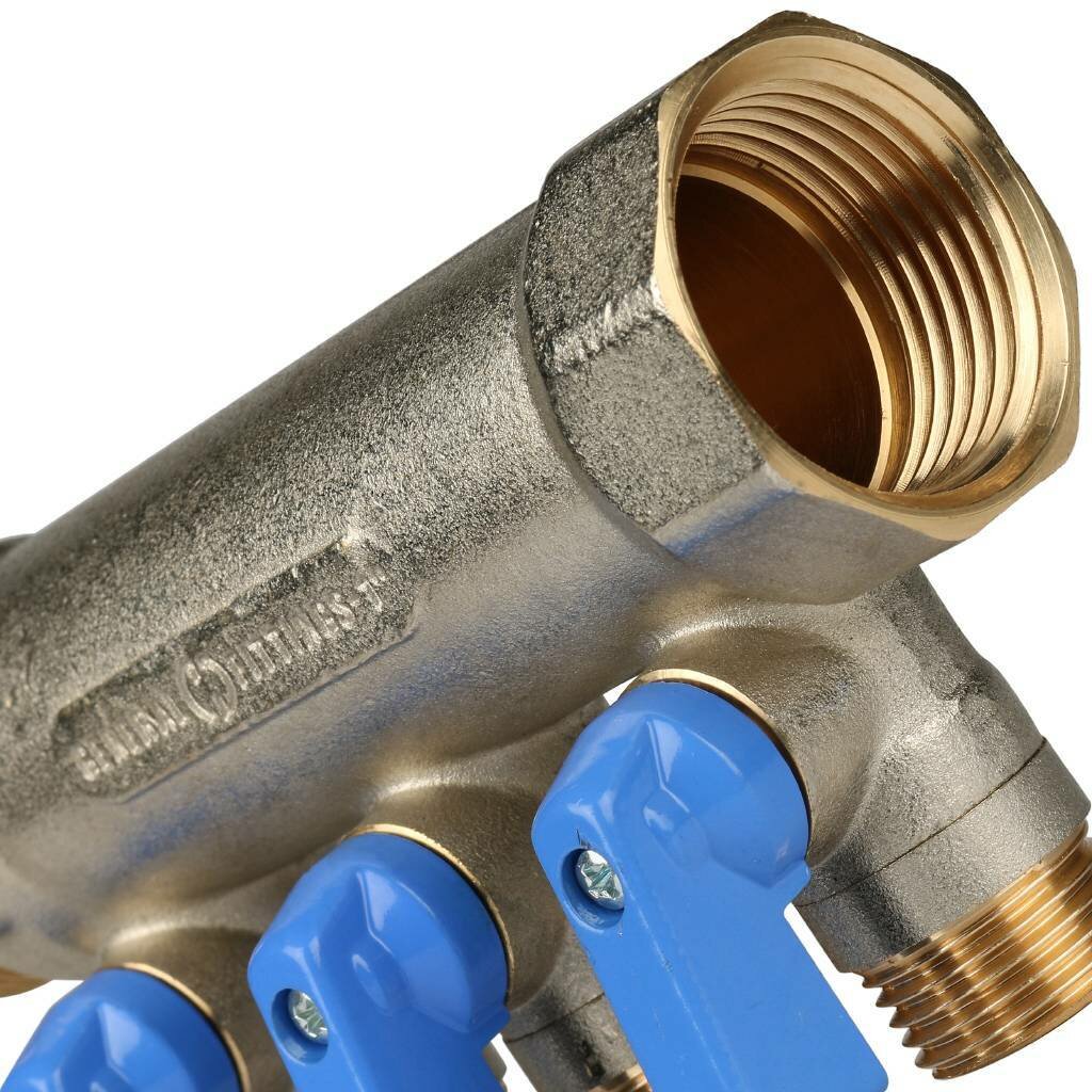 Stout Коллектор с шаровыми кранами 1", 3 отвода 1/2" (синие ручки) интересное: