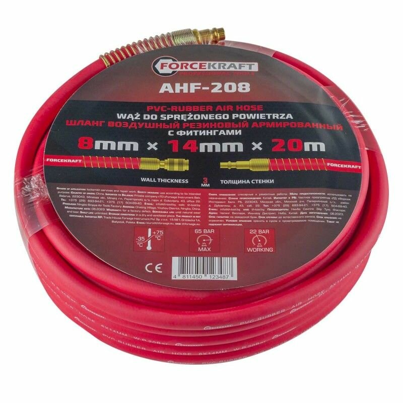 Шланг резиновый воздушный армированный с фитингами 8мм x 14мм x 20м FORCEKRAFT FK-AHF-208