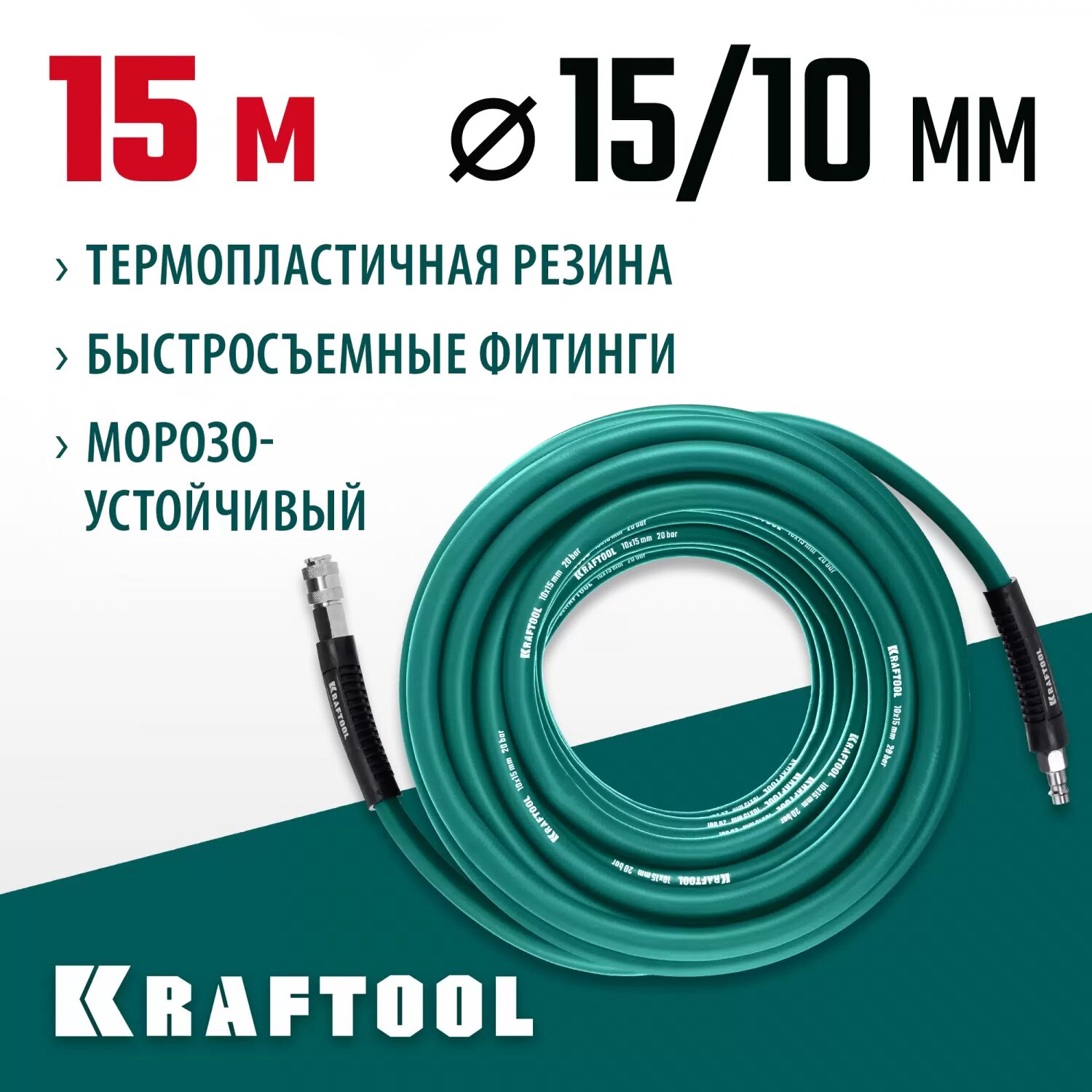 KRAFTOOL 15 м, 10 х1 5 мм, 20 бар, воздушный шланг с поворотными фитингами рапид (06588-15)