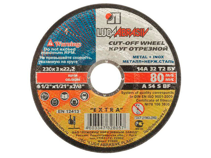LUGAABRASIV Круг отрезной по металлу "Луга" A 30 S BF 80 (14А БУ), 230 х 2.5 х 22 мм