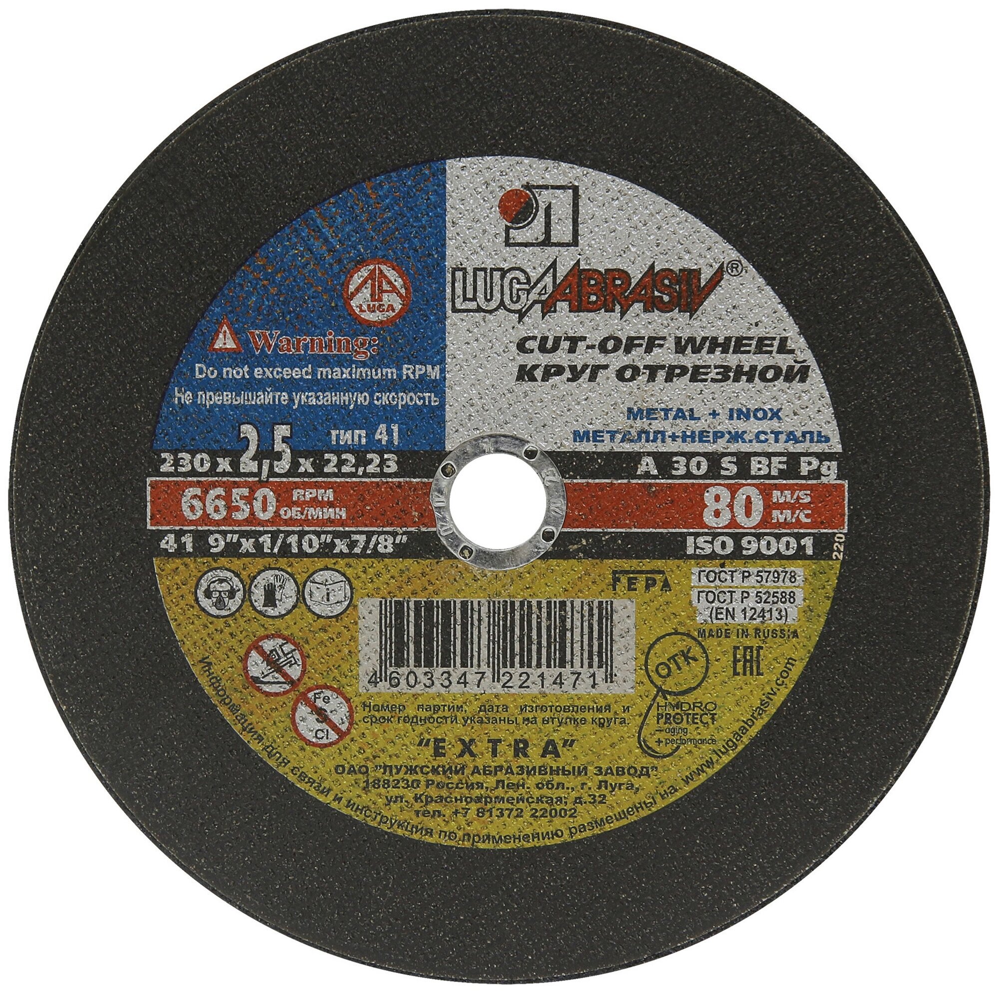 Отрезной диск по металлу Luga-Abrasiv 4603347292501