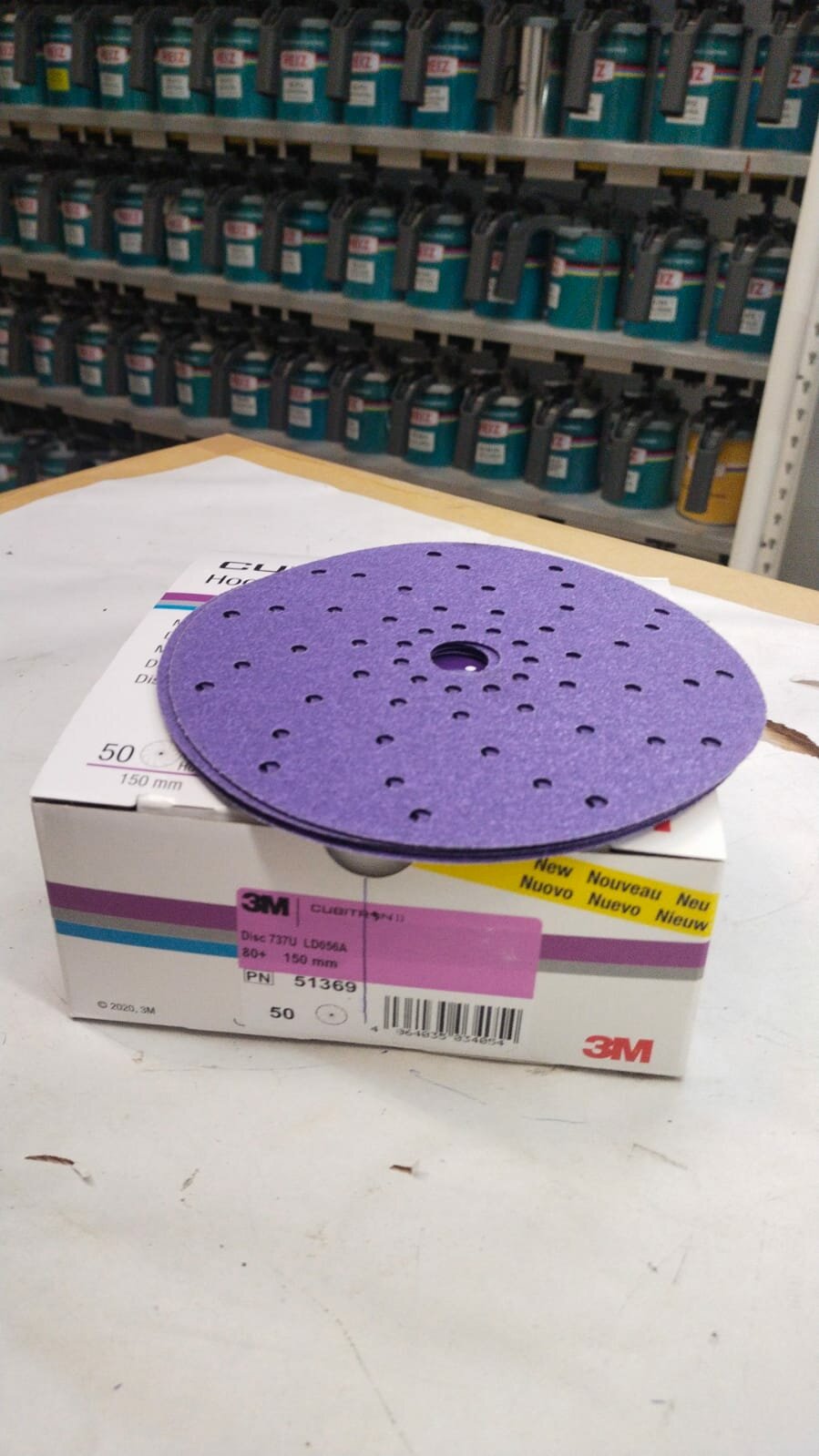Абразивный шлифовальный круг ( наждачка ) P80+ / 150 мм 3М™ 51369 737U Cubitron™ II Hookit™ Purple + c мультипылеотводом, 50 шт.