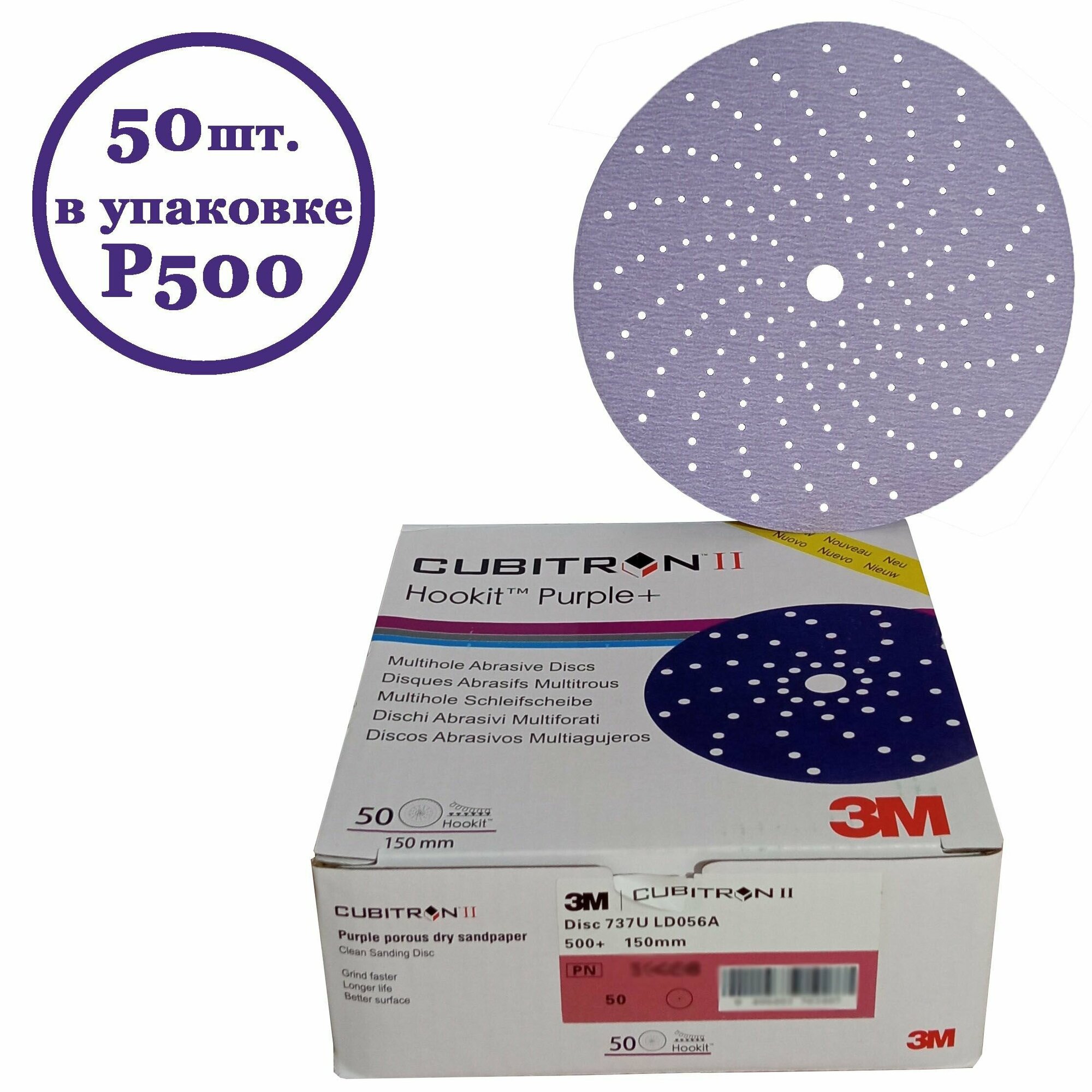 СохранитьКруг абразивный Hookit Purple+ Cubitron II 737U P500 150мм (50шт в упаковке) интересное: