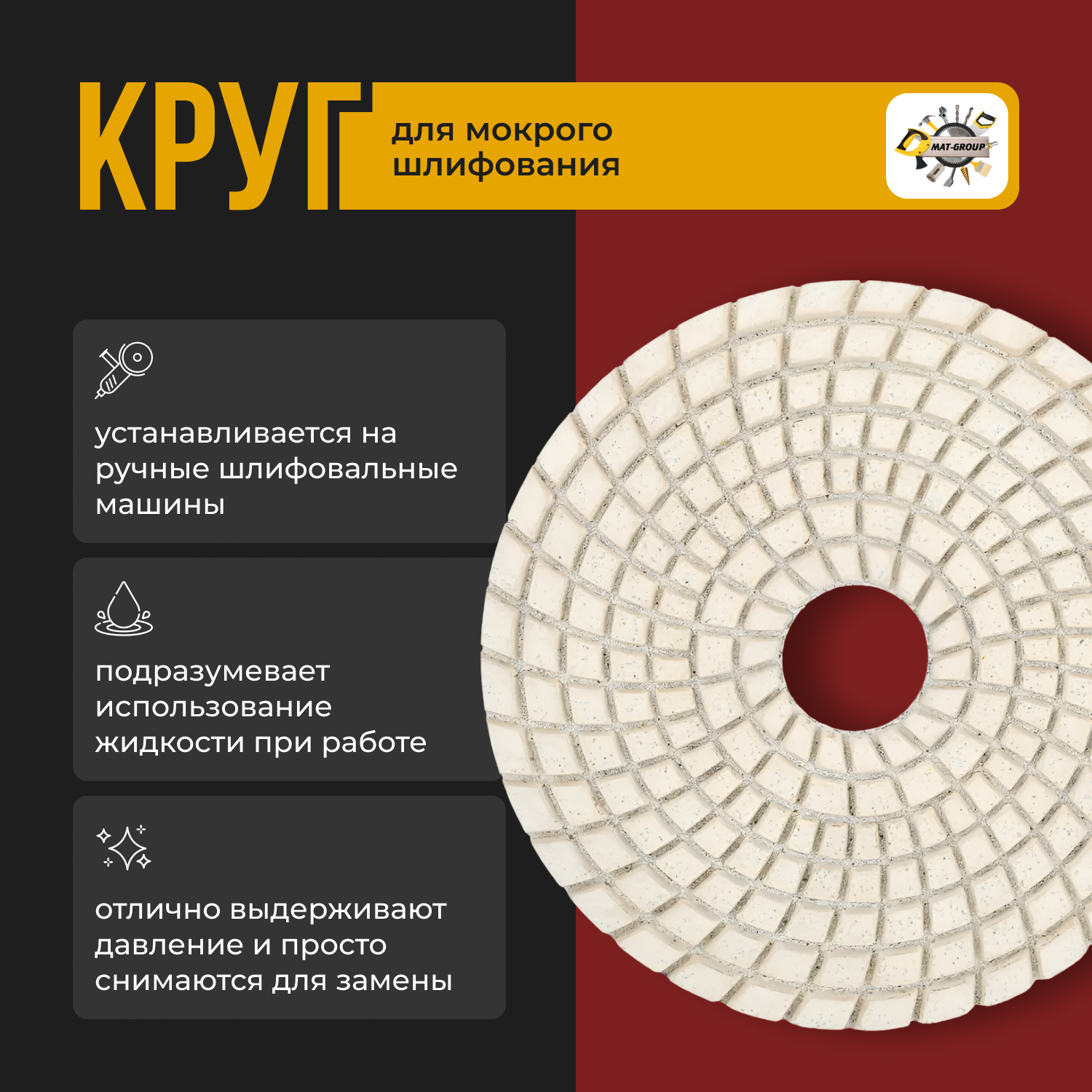 Круг алмазный, гибкий, мокрое шлифование, черепашка для полировки 100мм P100 (1шт)