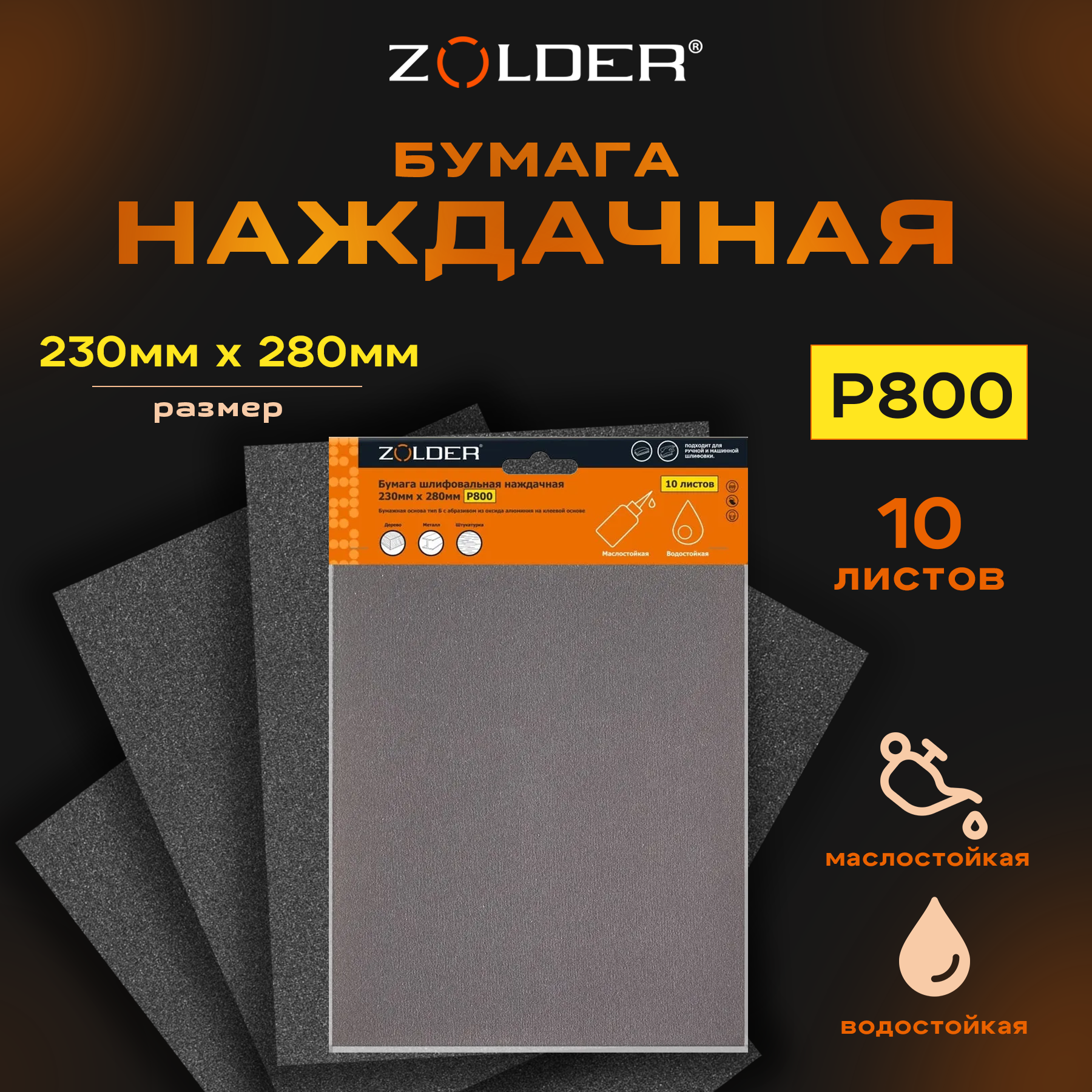 Купить Бумага шлифовальная, наждачная, 230мм х 280мм, Р800, 10 листов Zolder
