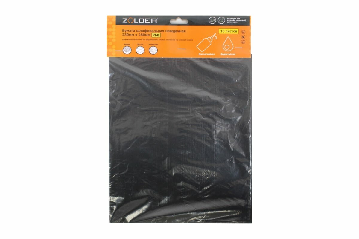 Купить Бумага шлифовальная, наждачная, 230мм х 280мм, Р60, 10листов, Zolder