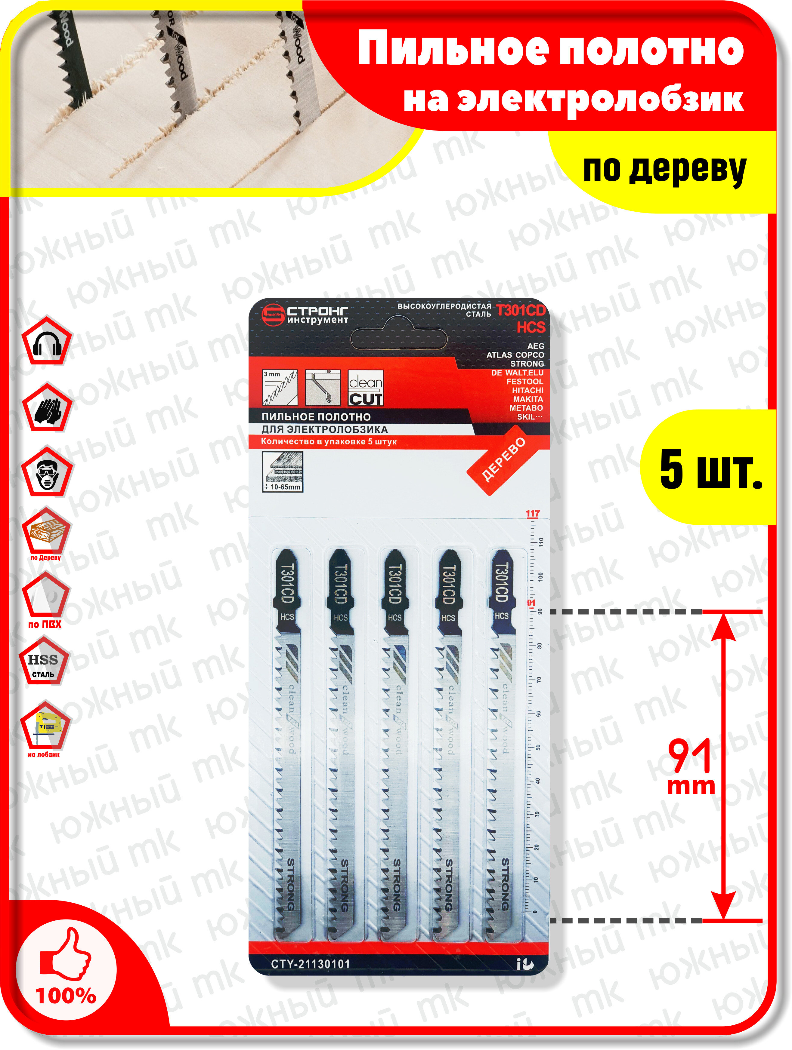 Комплект Пилки: Полотна для электролобзика STRONG; пилки для лобзика; по дереву 5ш в упаковке 301CD интересное: