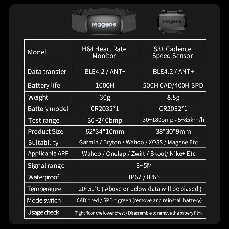 Magene S3+ и H64 датчик скорости/каденции и пульса, Черный
