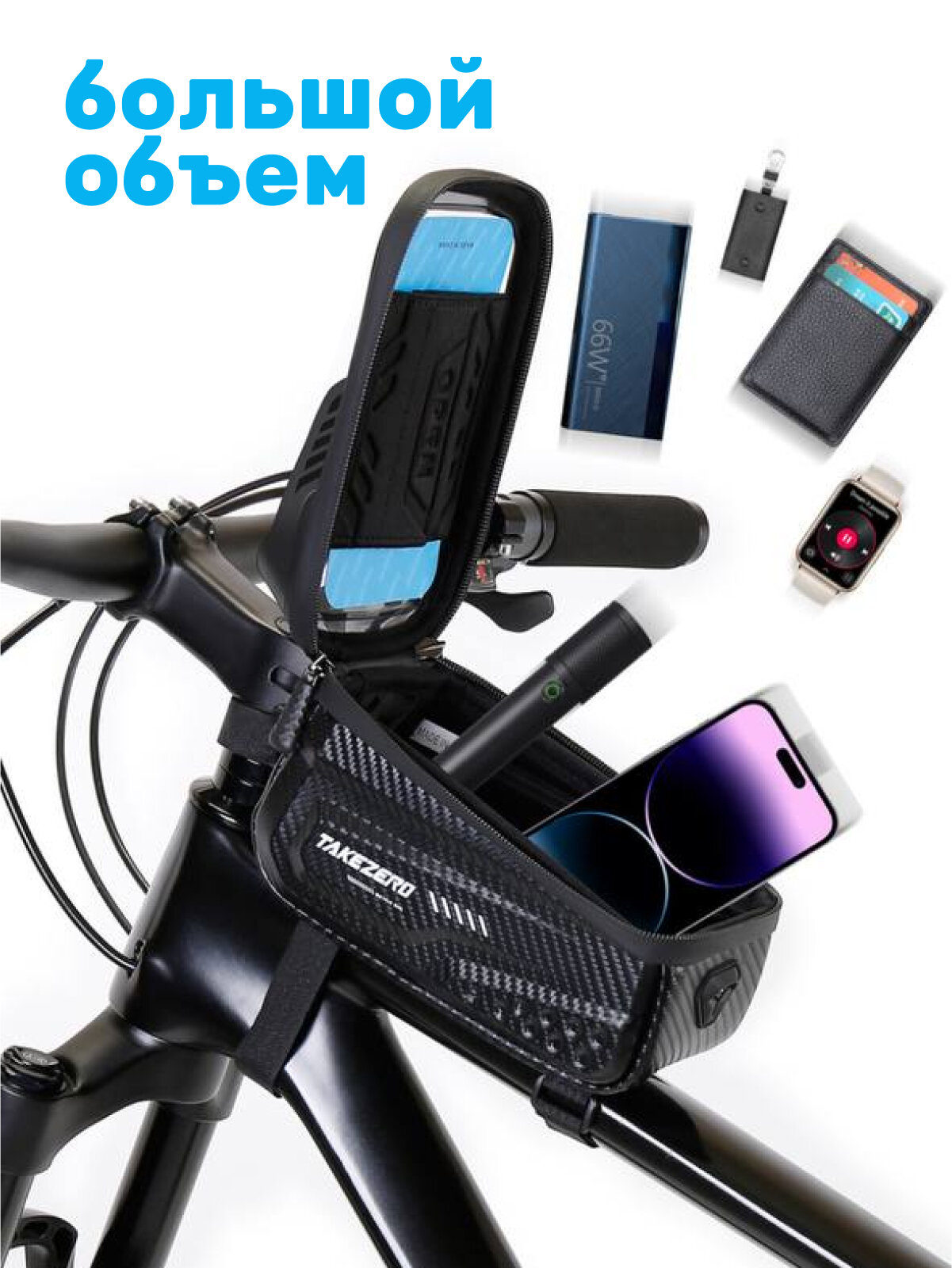 | Дополнительная информация | Сумка для велосипеда, на раму, держатель телефона, вело сумка |