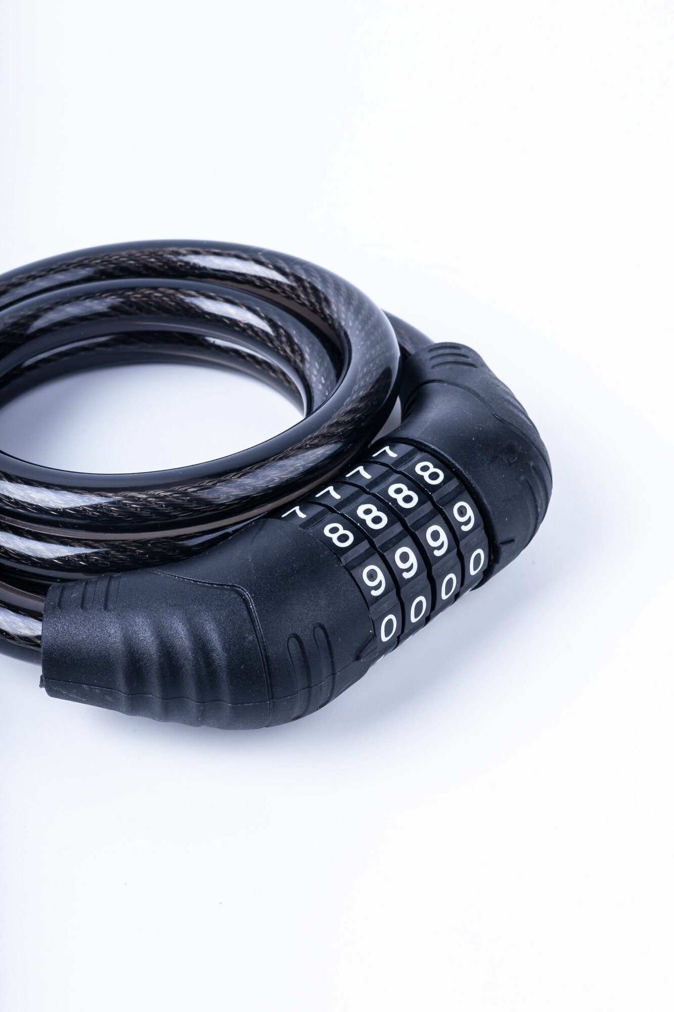 Купить Замок велосипедный тросовый усиленный 12x1200мм кодовый, черный