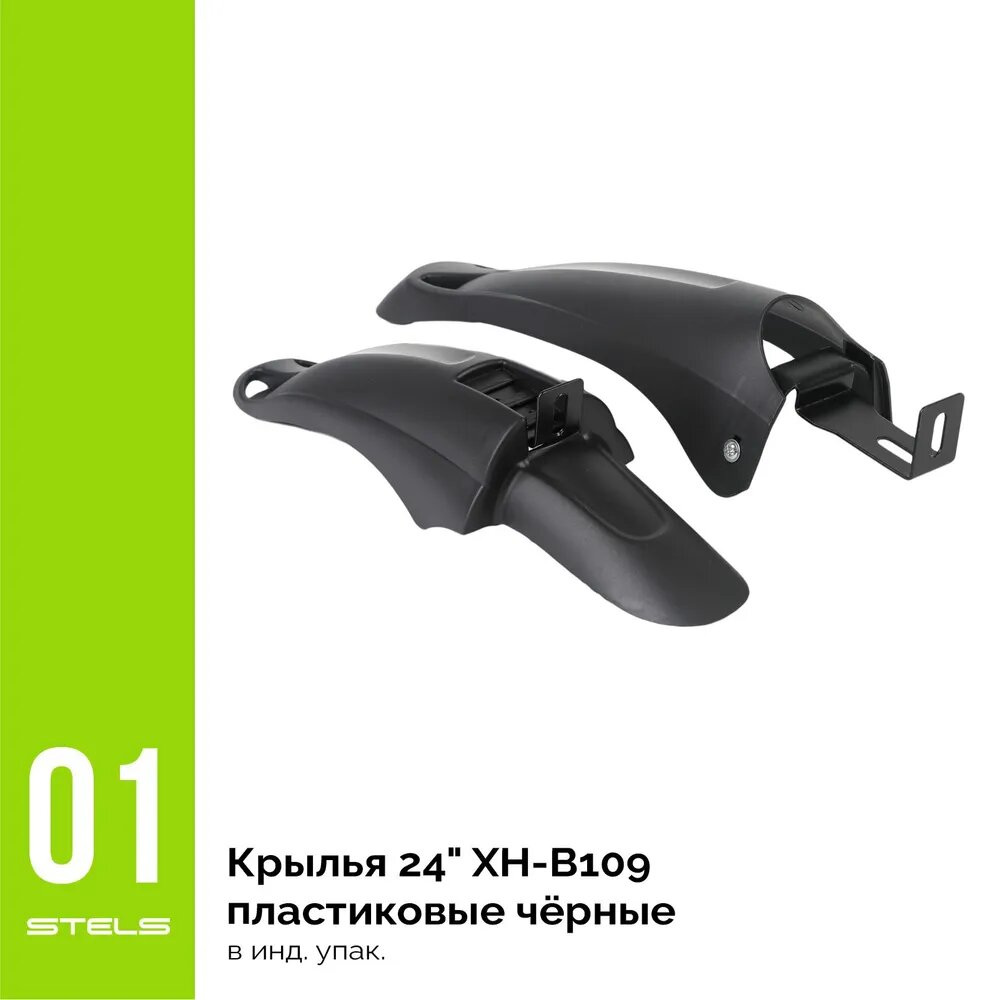 Купить Крылья для велосипеда 24" STELS XH-B109 пластиковые чёрные, в индивидуальной упаковке (комплект) NEW