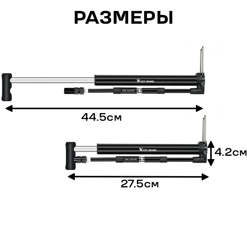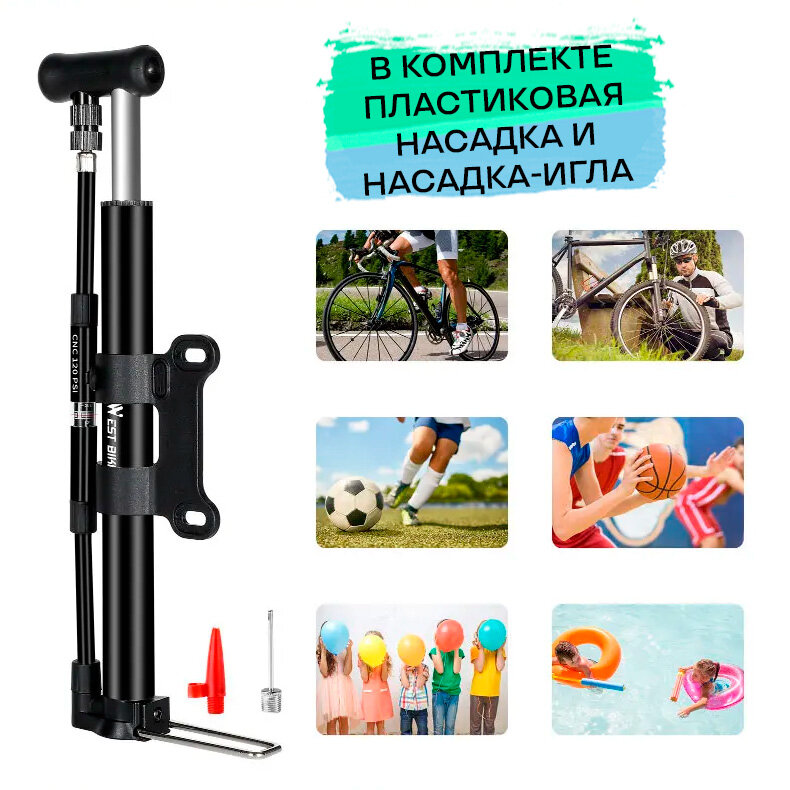 Насос для велосипеда ручной напольный West Biking ниппель Schrader/Presta, с Т-образной ручкой, манометром, креплением интересное: