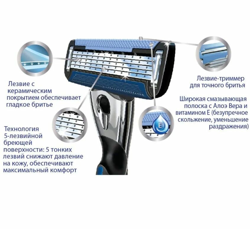Острые лезвия, унифицированная система для бритья ( станки и кассеты взаимозаменяемы, вне зависимости от количества лезвий) Меньше раздражения. Совместимость с кассетами Schick-WILKINSON SWORD |