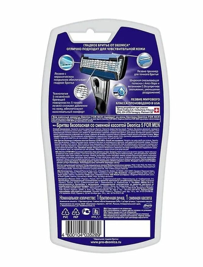 Станок д/бритья DEONICA Men 5 лезвий с 1 кассетой спартак