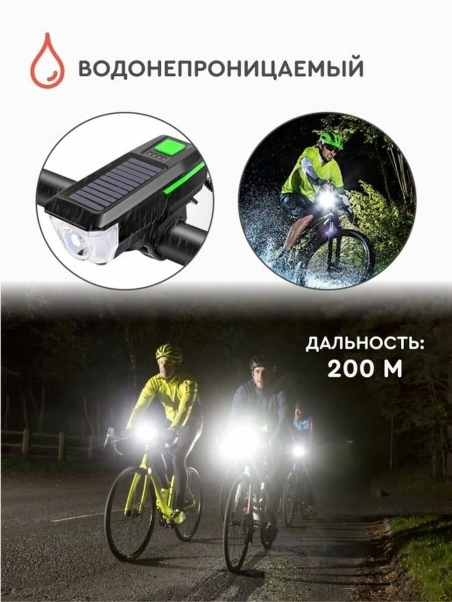 Фонарь велосипедный , передняя велофара на солнечной батарее с сигналом, зарядка microUSB интересное: