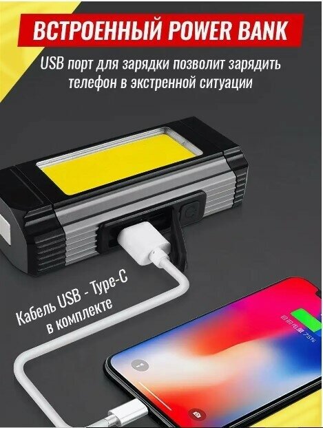 Фонарь велосипедный аккумуляторный светодиодный передний /Велофонарьна руль/повербанк/powerbank,серый интересное: