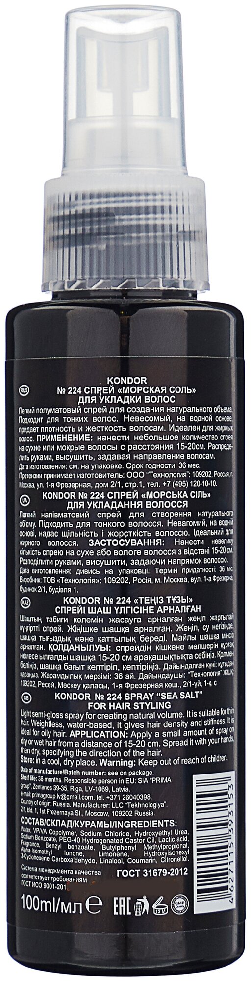 Kondor Спрей для укладки волос Морская соль №224, 100 мл