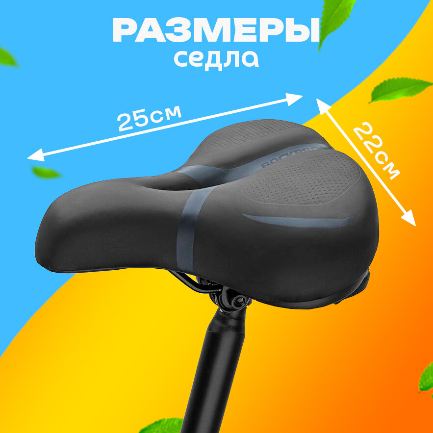 Купить Седло для велосипеда взрослое ROCKBROS широкое, комфортное, с эластомерными пружинами