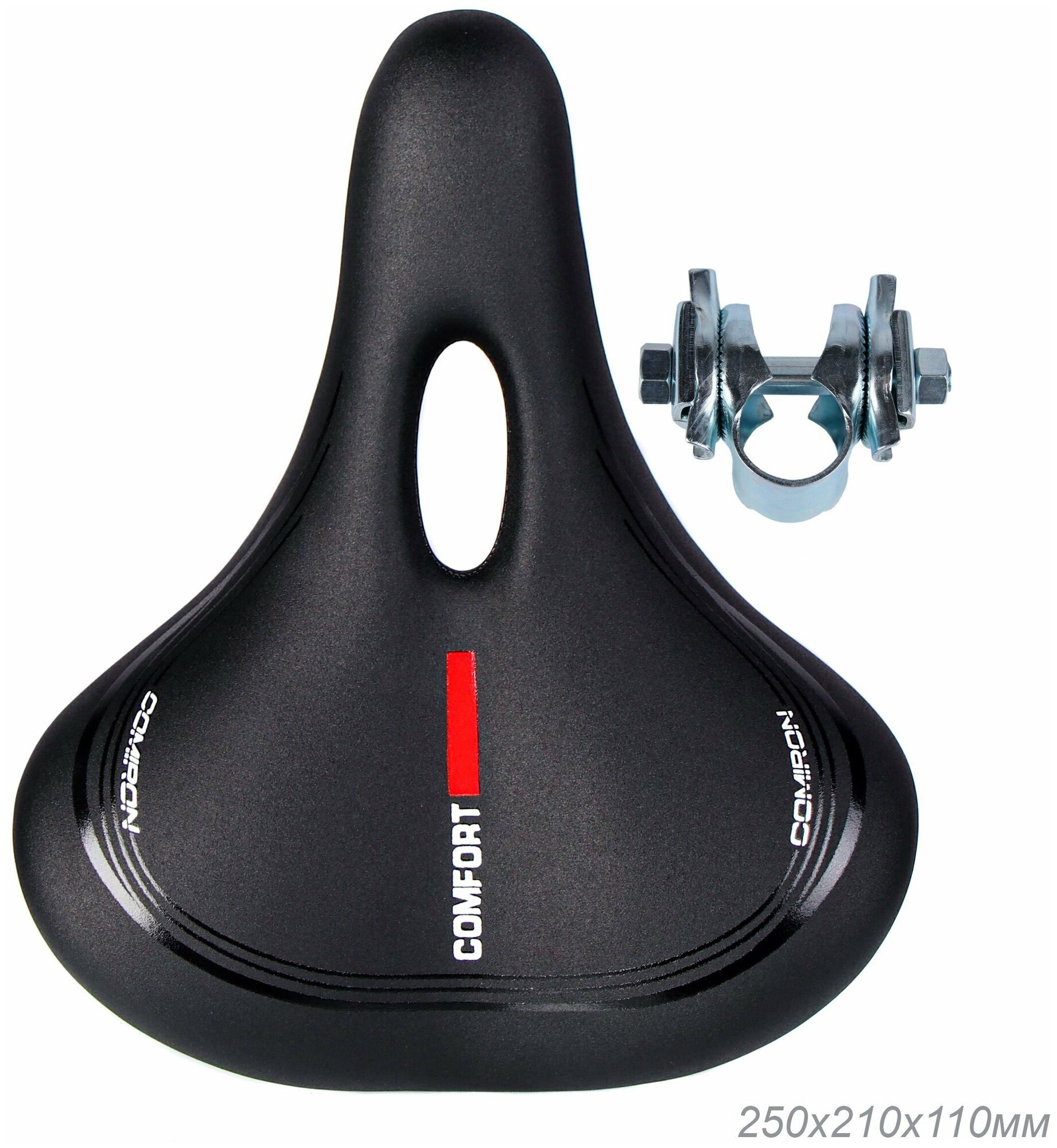 СохранитьСедло велосипедное комфортное с креплением COMIRON MADRID 250x210. Цвет: Чёрный Красный интересное: