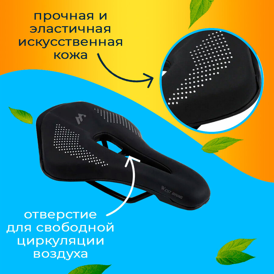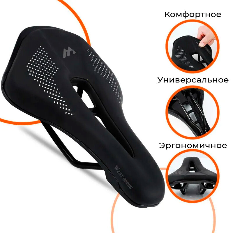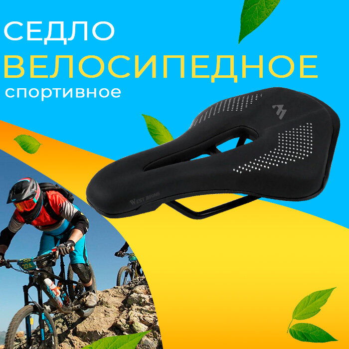 Седло для велосипеда взрослое West Biking спортивное, удобное, черное интересное:
