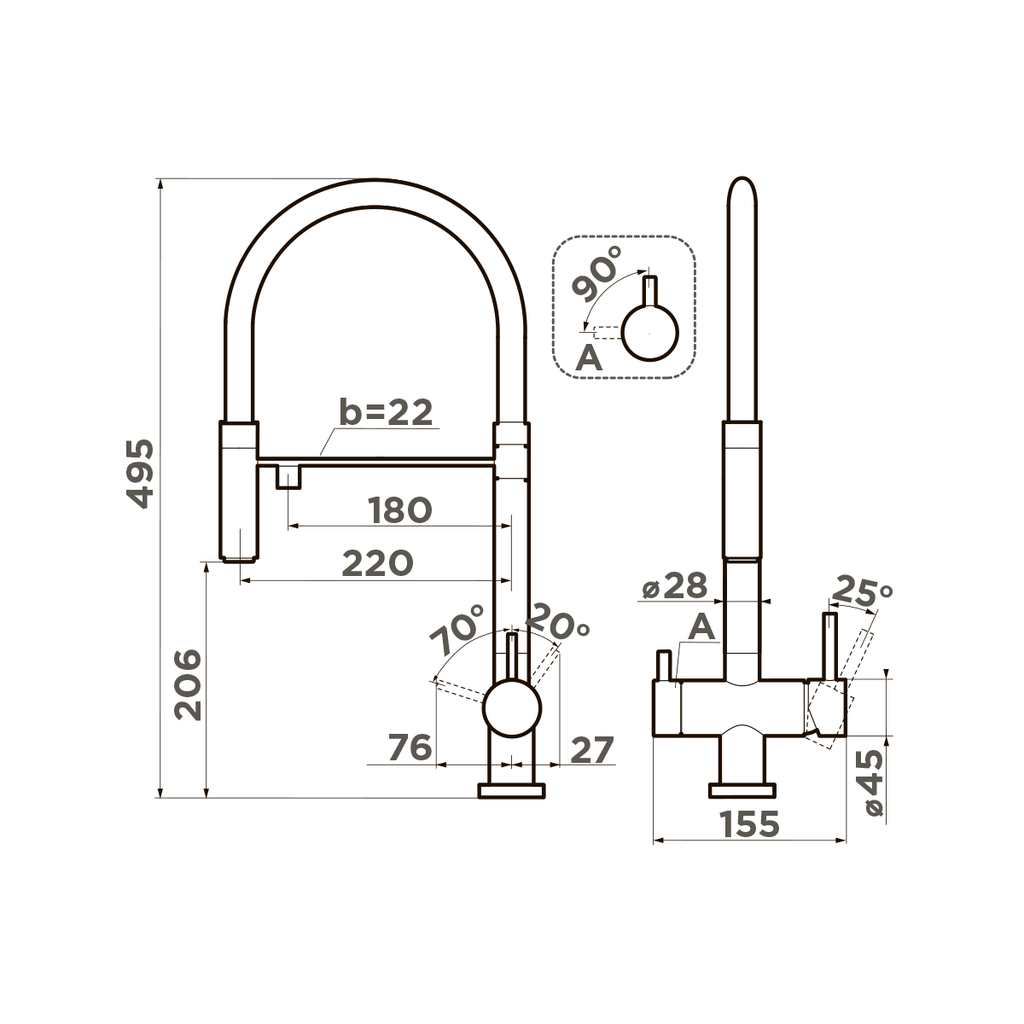 Смеситель Omoikiri Kanto-PVD-GM 4994013 для кухонной мойки